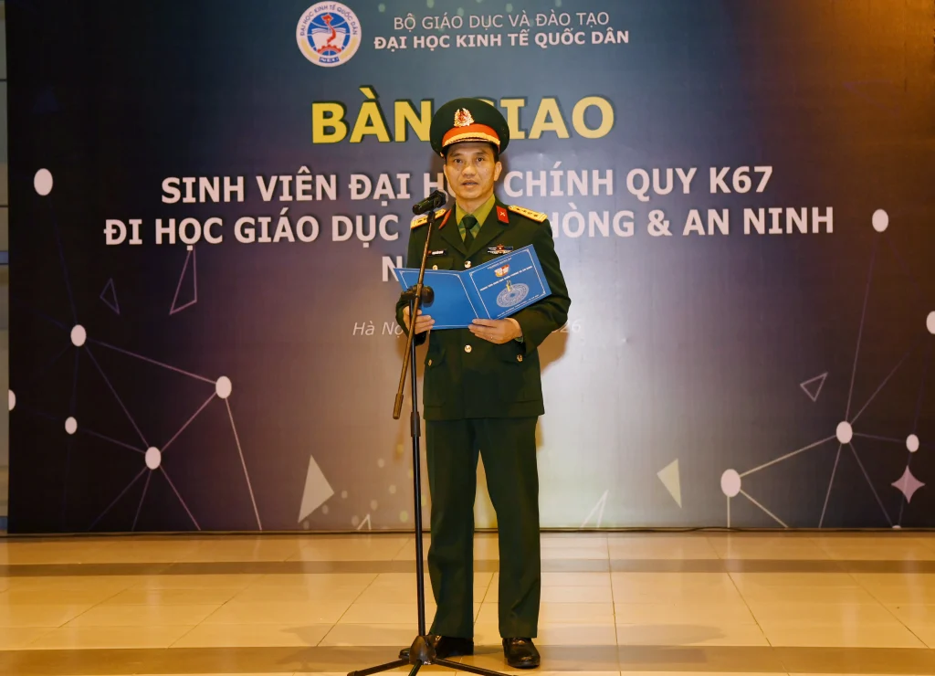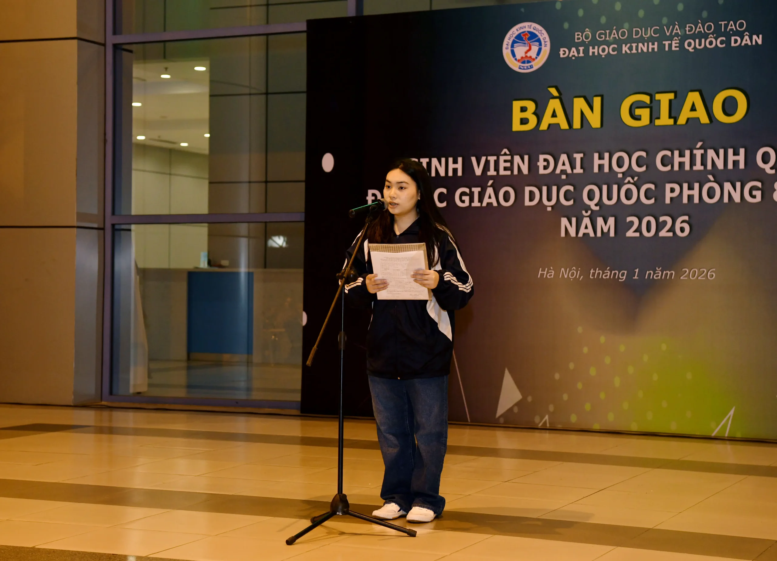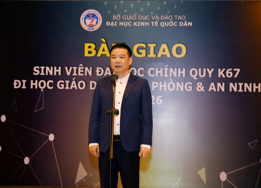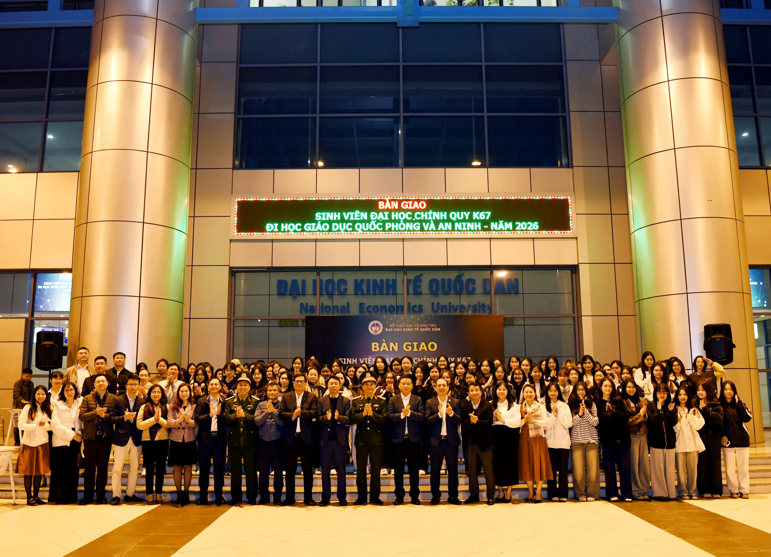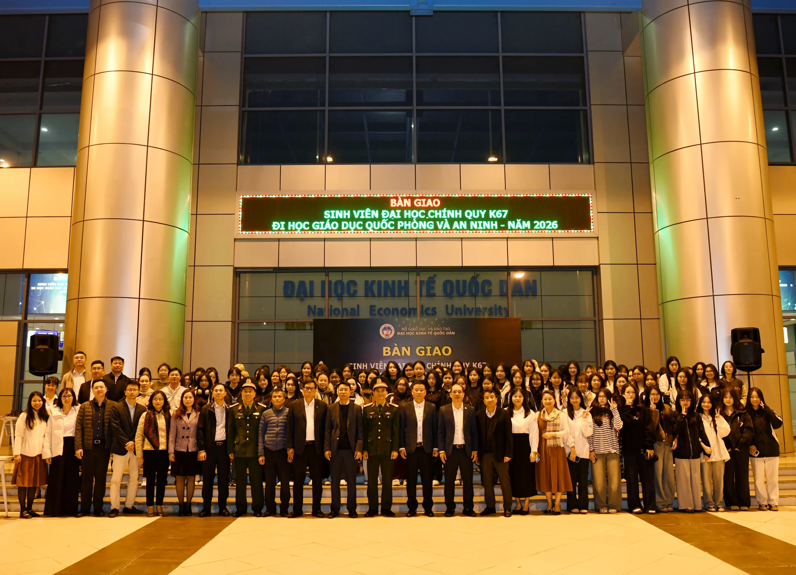Sáng 19/01/2026, Đại học Kinh tế Quốc dân đã tổ chức bàn giao 1.400 sinh viên Đại học chính quy Khóa 67 tham gia học tập Giáo dục quốc phòng và an ninh tại Trường Quân sự Bộ Tư lệnh Thủ đô Hà Nội. Chương trình được triển khai nhằm tăng cường phối hợp chặt chẽ giữa Nhà trường và đơn vị đào tạo, bảo đảm điều kiện học tập, rèn luyện tốt nhất cho sinh viên, thực hiện nghiêm túc quy định của Bộ Giáo dục và Đào tạo.