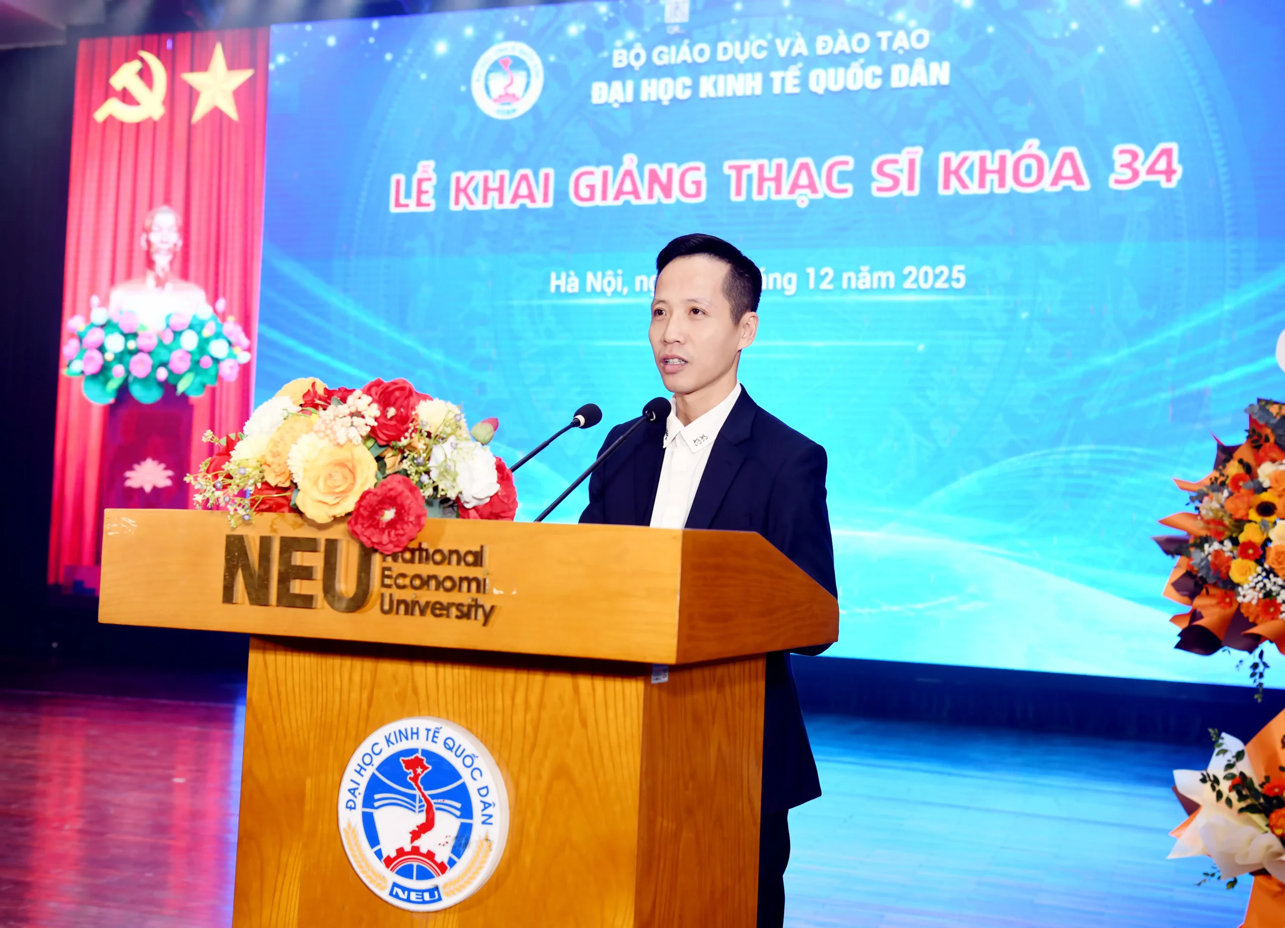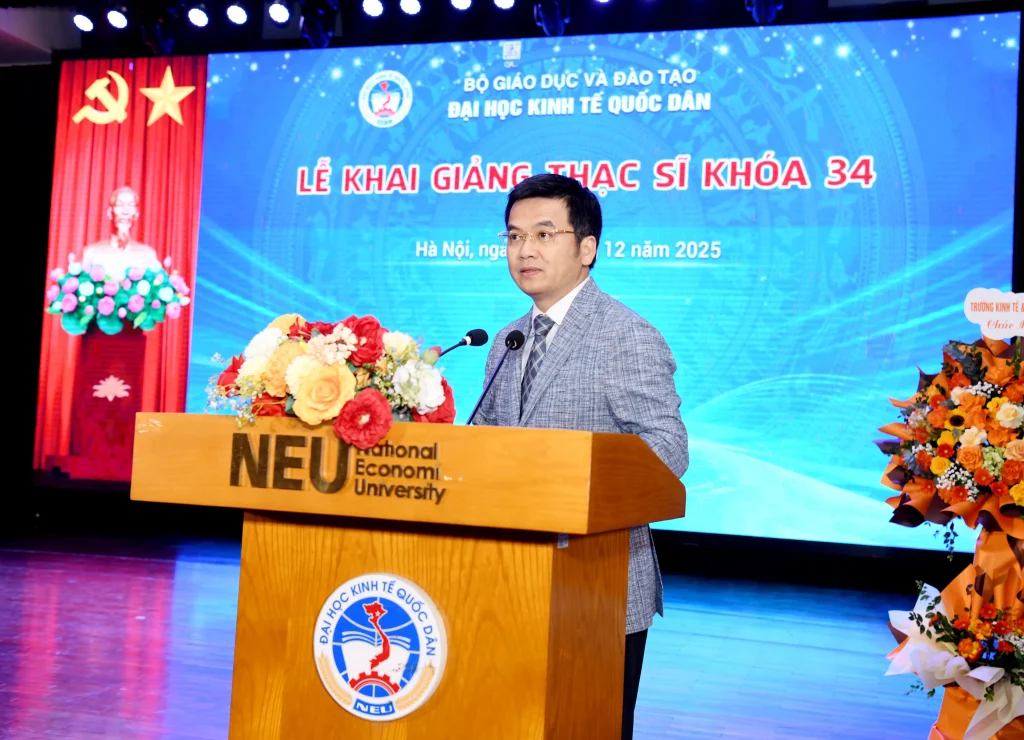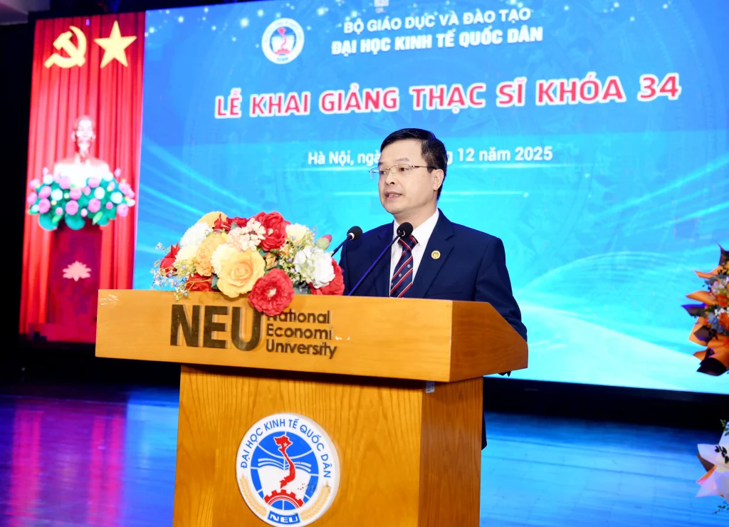 Phát biểu tại Lễ khai giảng, PGS.TS Bùi Huy Nhượng – Giám đốc Đại học Kinh tế Quốc dân đã gửi lời chúc mừng tới gần 1.700 học viên trúng tuyển chương trình cao học khóa 34, đồng thời bày tỏ tin tưởng vào hành trình học tập và phát triển phía trước của các tân học viên.