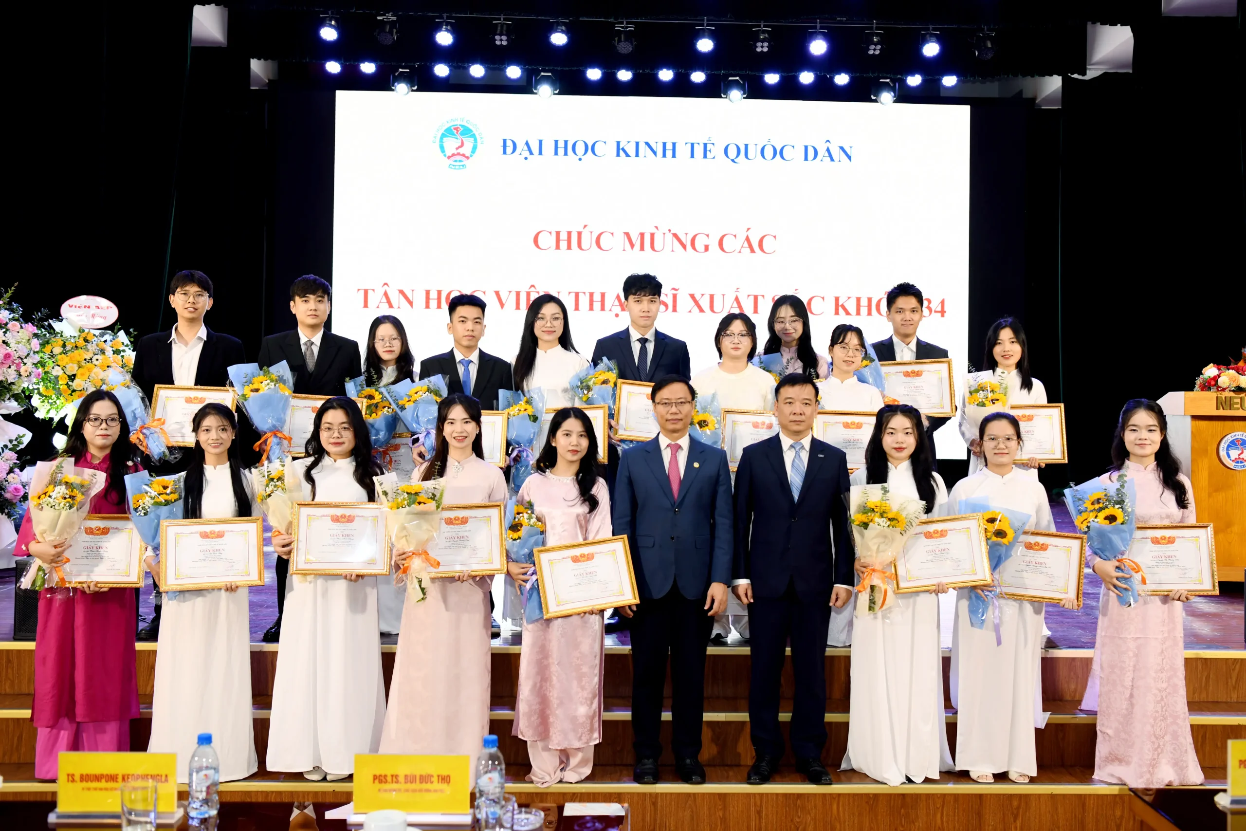 Lãnh đạo Đại học trao giấy khen và tặng hoa cho các học viên đạt thành tích cao trong kỳ tuyển sinh trình độ thạc sĩ khóa 34
