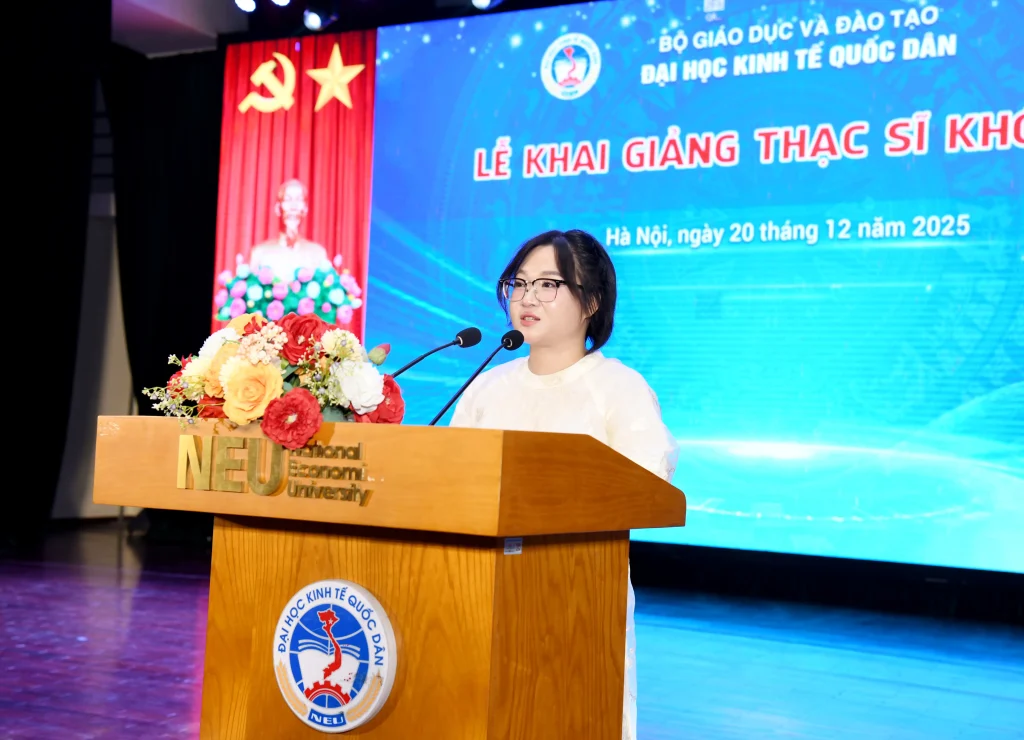Chúng em tin rằng, trong môi trường học thuật năng động, toàn diện, cũng như sự dẫn dắt từ đội ngũ giảng viên giàu kinh nghiệm, tâm huyết, hành trình cao học tại Đại học Kinh tế Quốc dân sẽ không chỉ trang bị cho chúng em những kiến thức mang tính thời sự và ứng dụng cao, mà còn tạo cơ hội cho chúng em được rèn luyện năng lực tư duy phản biện, năng lực lãnh đạo và tinh thần trách nhiệm với cộng đồng. Những giá trị ấy sẽ theo chúng em trở lại với doanh nghiệp, tổ chức và xã hội – nơi tri thức không nằm trên trang sách, mà được chuyển hóa thành hành động và đóng góp hiệu quả vào sự phát triển của đất nước”.