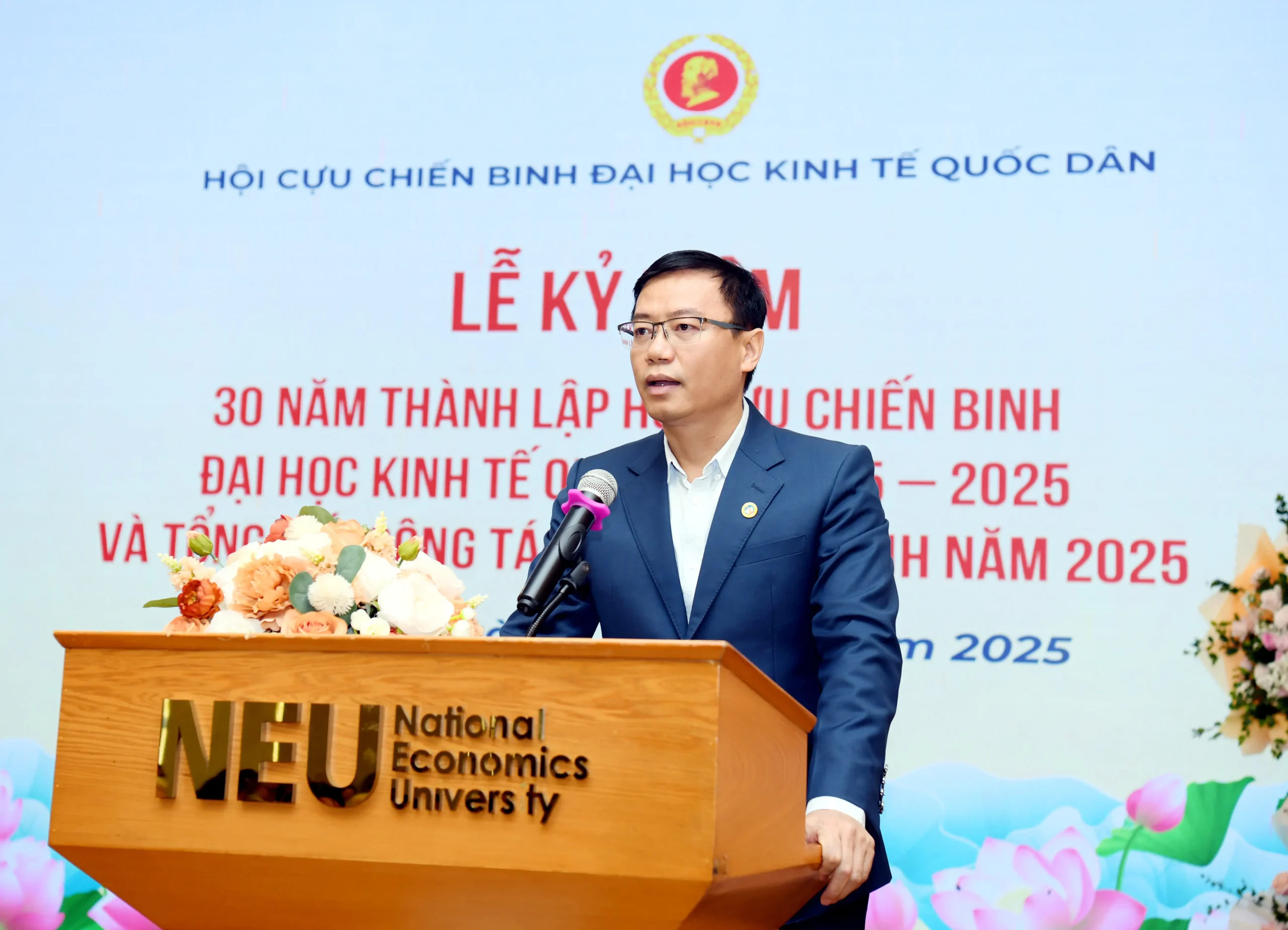 PGS.TS Bùi Đức Triệu – Chủ tịch Hội CCB Đại học Kinh tế Quốc dân đọc diễn văn kỷ niệm 30 năm ngày thành lập Hội CCB ĐHKTQD và báo cáo tổng kết công tác CCB năm 2025