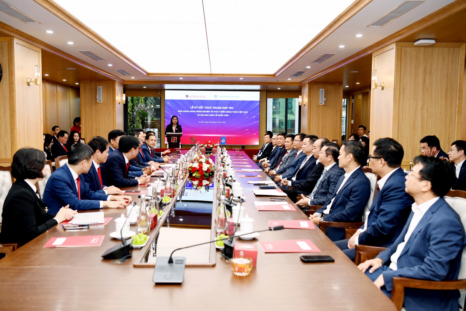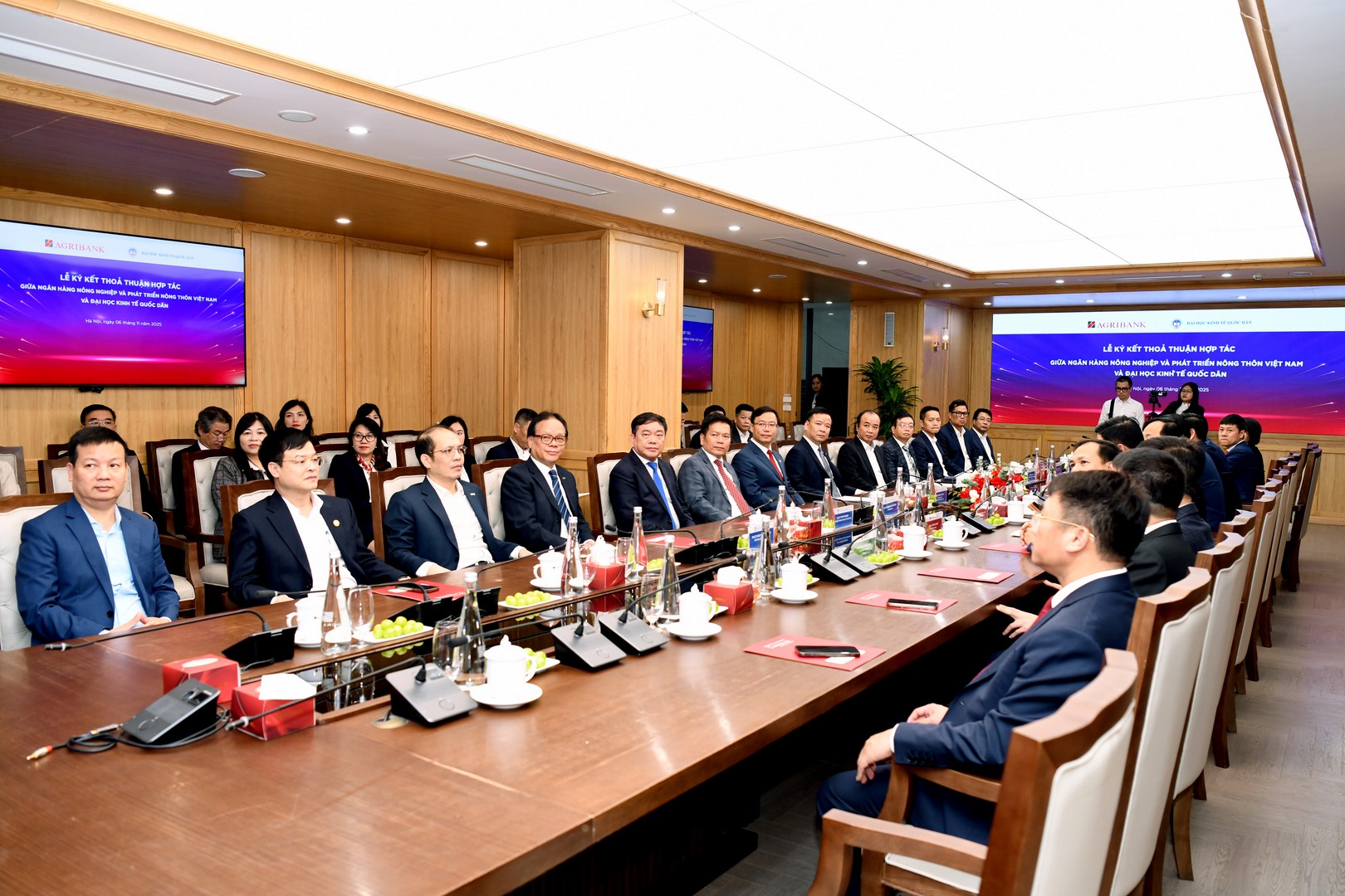 Đại học Kinh tế Quốc dân và Agribank thiết lập mối quan hệ từ năm 2004, qua hơn 20 năm đã có những thành quả tích cực. Hiện nay, trong bối cảnh ngành ngân hàng đang chuyển mình mạnh mẽ theo hướng số hóa và hội nhập quốc tế, việc đẩy mạnh hợp tác toàn diện giữa Agribank và Đại học Kinh tế Quốc dân là yêu cầu tất yếu, mang lại lợi ích song phương và tạo nền tảng cho mối quan hệ hợp tác toàn diện, bền vững, góp phần nâng cao hiệu quả hoạt động và uy tín của cả hai bên trong thời kỳ mới. Sự hợp tác sẽ giúp Agribank gắn kết chặt chẽ giữa đào tạo, nghiên cứu và thực tiễn hoạt động ngân hàng; tạo điều kiện tiếp cận nguồn nhân lực chất lượng cao, đồng thời nâng cao hình ảnh thương hiệu trong cộng đồng học thuật và sinh viên. Đối với Đại học Kinh tế Quốc dân, thỏa thuận hợp tác mở ra cơ hội tăng cường gắn kết doanh nghiệp, hỗ trợ sinh viên thực hành, thực tập và việc làm, đồng thời đẩy mạnh nghiên cứu ứng dụng trong lĩnh vực ngân hàng, chuyển đổi số và phát triển bền vững.