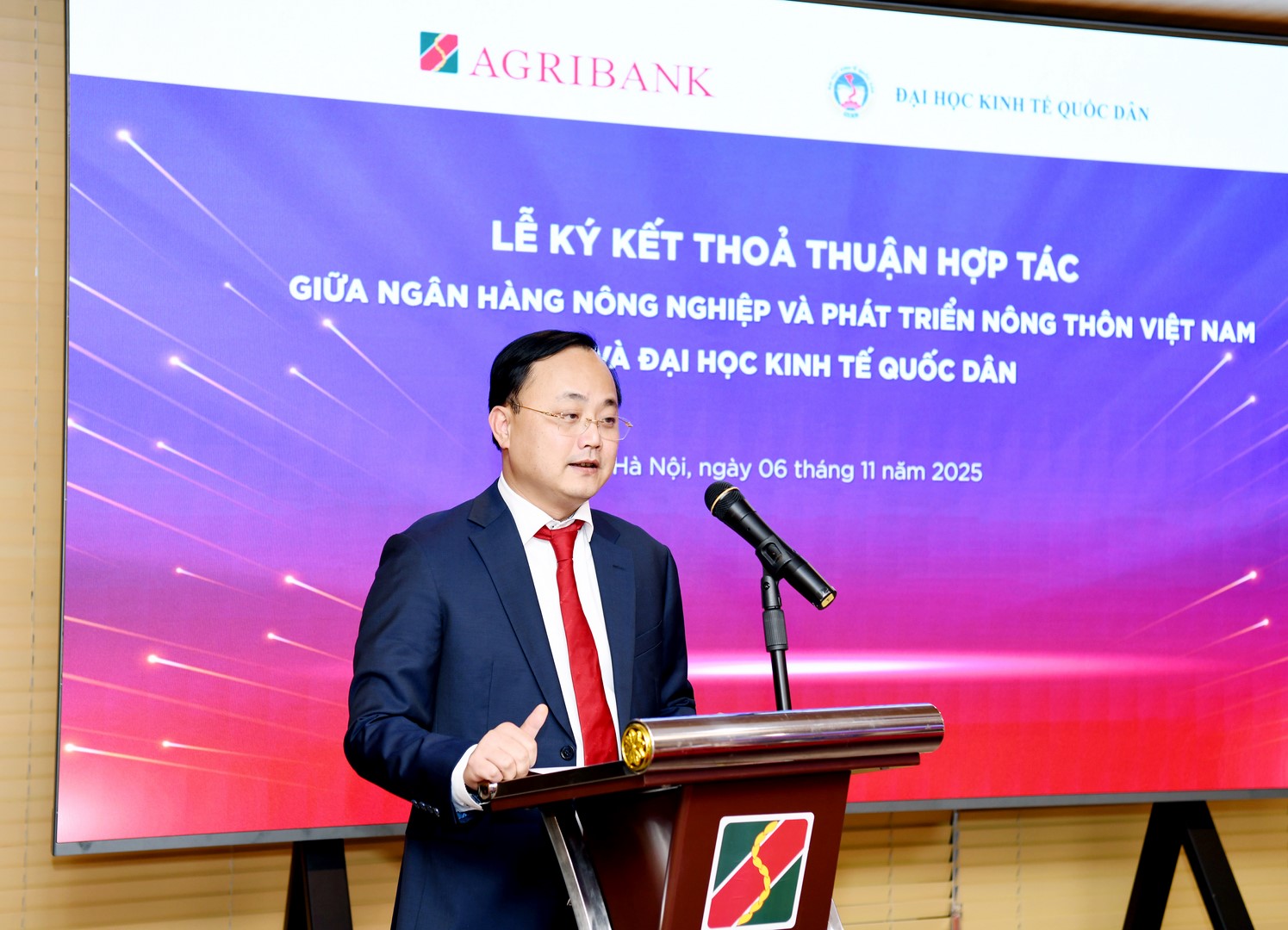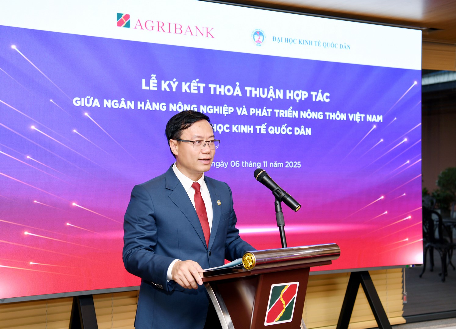 Trải qua hơn 37 năm xây dựng và phát triển, Agribank luôn là ngân hàng thương mại nhà nước chủ lực, tiên phong thực hiện chính sách tiền tệ của Đảng và Nhà nước, gắn bó mật thiết với sự nghiệp phát triển nông nghiệp, nông dân, nông thôn – trụ đỡ của nền kinh tế Việt Nam. Với tổng tài sản trên 2,2 triệu tỷ đồng, dư nợ đầu tư hơn 1,9 triệu tỷ đồng, cùng mạng lưới hơn 2.200 chi nhánh, phòng giao dịch phủ khắp mọi miền Tổ quốc – từ đồng bằng, miền núi, biên giới cho đến hải đảo – Agribank luôn giữ vững vai trò tiên phong của một ngân hàng vì cộng đồng, vì người dân, vì sự phát triển của đất nước. Song song với đó, Agribank luôn xác định con người là trung tâm của phát triển, là “nguồn vốn quý nhất” của mọi chiến lược. Ban lãnh đạo Agribank hiểu rằng: ngân hàng có thể sở hữu công nghệ hiện đại, hệ thống rộng lớn, nguồn lực tài chính mạnh mẽ, nhưng chỉ có tri thức, đạo đức nghề nghiệp và khát vọng cống hiến của con người mới tạo nên sức sống bền vững. Chính vì vậy, Agribank lựa chọn hợp tác với Đại học Kinh tế Quốc dân – cái nôi đào tạo nhiều thế hệ cán bộ quản lý, nhà kinh tế, chuyên gia tài chính xuất sắc của đất nước – như một bước đi chiến lược trong hành trình đầu tư cho tri thức và con người Việt Nam.
