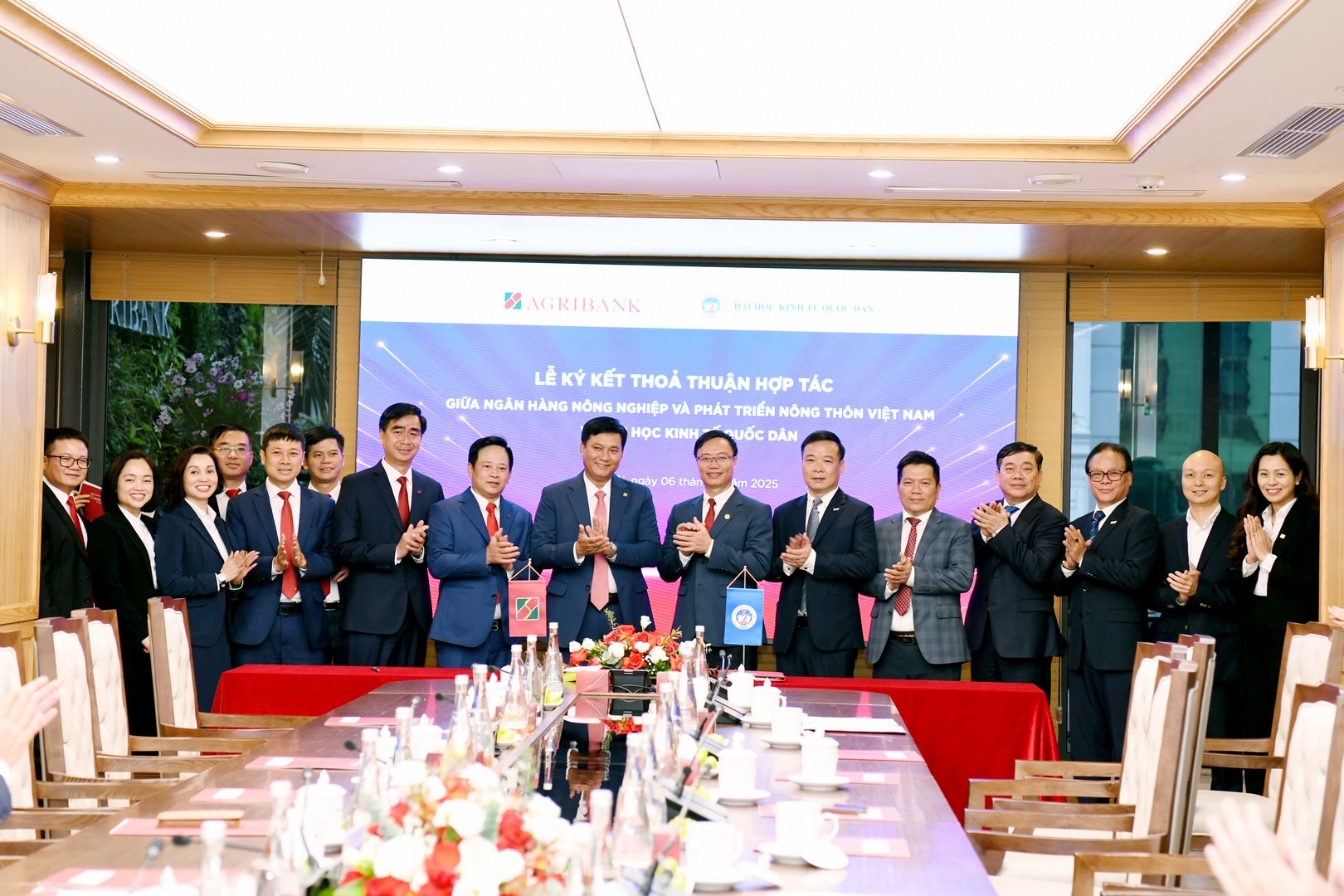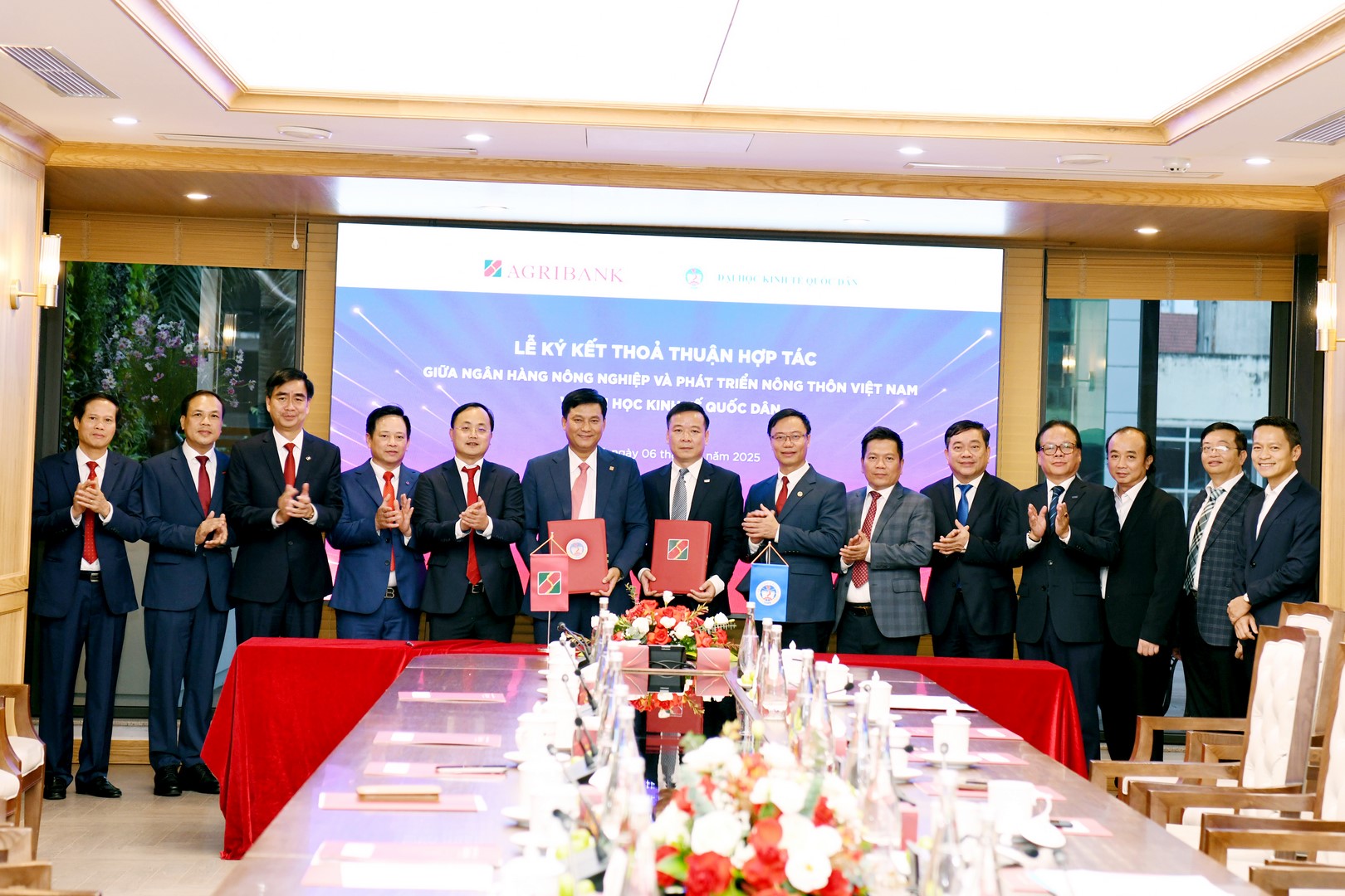 Chiều ngày 06/11/2025, tại Trụ sở chính Agribank, Đại học Kinh tế Quốc dân và Ngân hàng Nông nghiệp và Phát triển Nôngthôn Việt Nam (Agribank) tổ chức Lễ ký kết thỏa thuận hợp tác nhằm tăng cường mối quan hệ đã được xây dựng hơn 20 năm, cùng hướng tới mục tiêu phát triển nguồn nhân lực chất lượng cao, góp phần nâng cao hiệu quả hoạt động và uy tín của cả hai bên trong thời kỳ mới, đóng góp tích cực cho sự phát triển kinh tế – xã hội của đất nước.