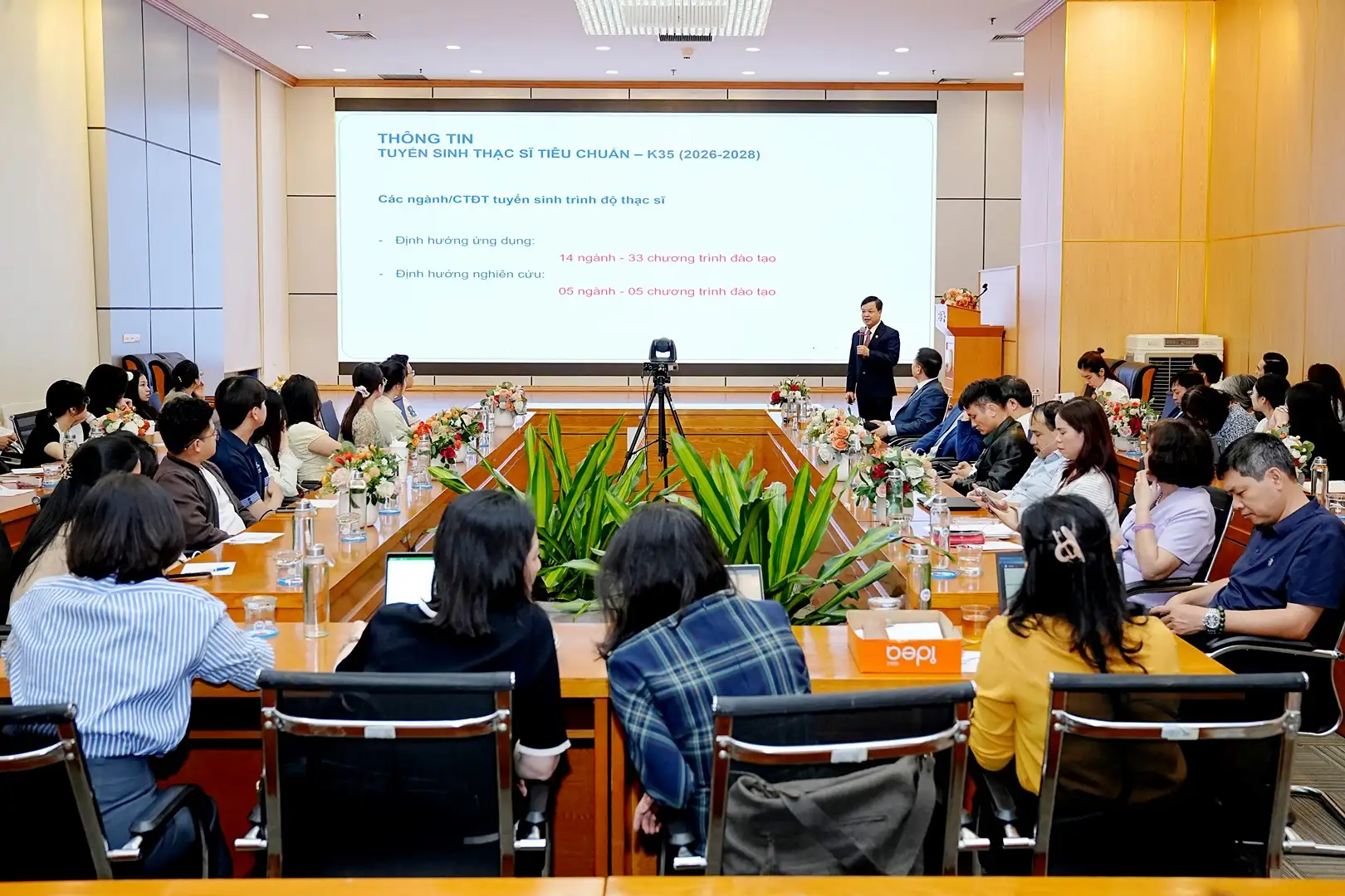 Tham dự và chia sẻ tại buổi giới thiệu có: PGS.TS Bùi Huy Nhượng – Giám đốc Đại học; PGS.TS Vũ Thành Hưởng – Viện trưởng Viện đào tạo Sau đại học; cùng đại diện lãnh đạo các Trường, Phòng ban, Khoa, Viện, Trung tâm thuộc và trực thuộc Đại học; các bạn thí sinh tham dự trực tiếp tại hội trường và các thí sinh theo dõi trên livestream.