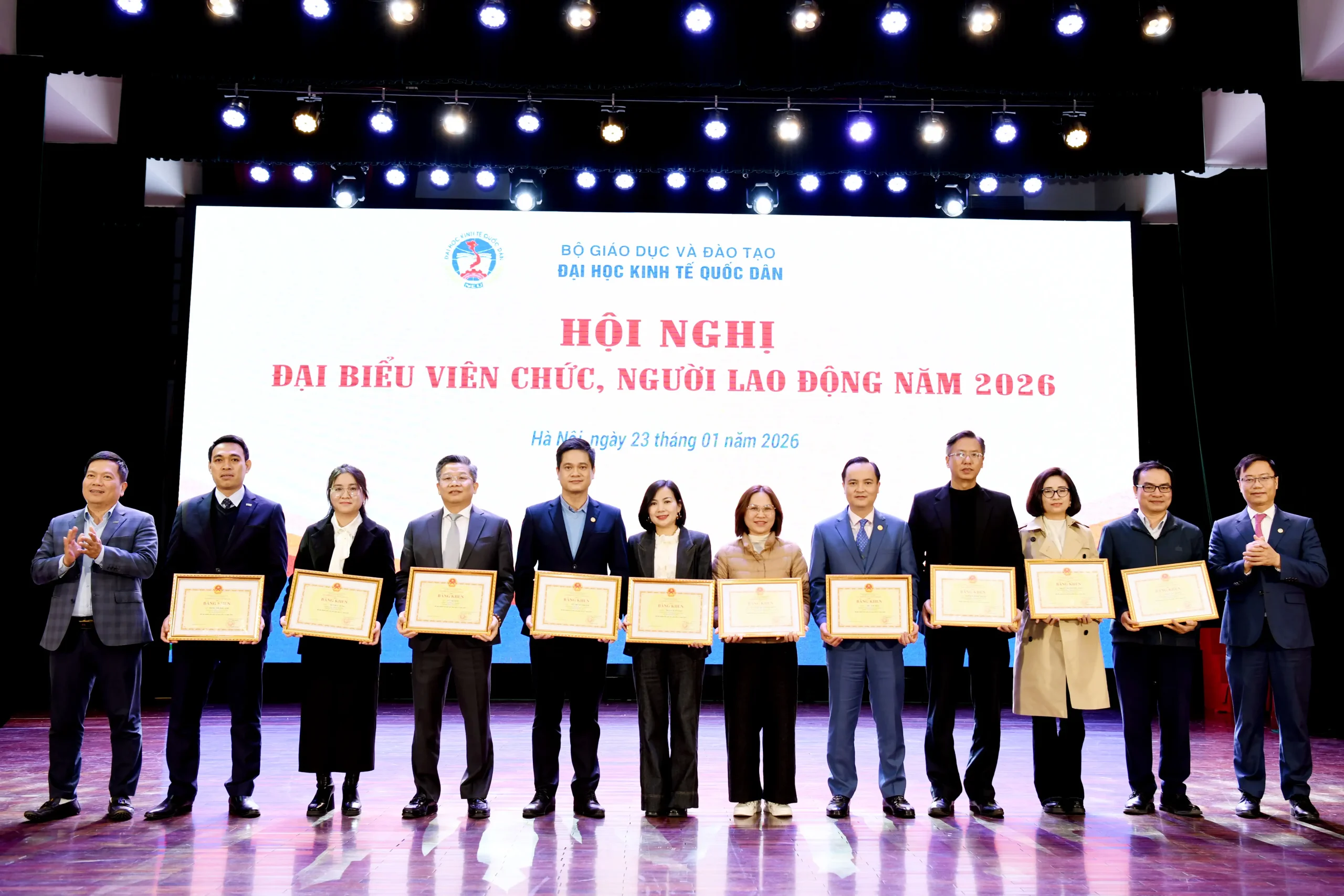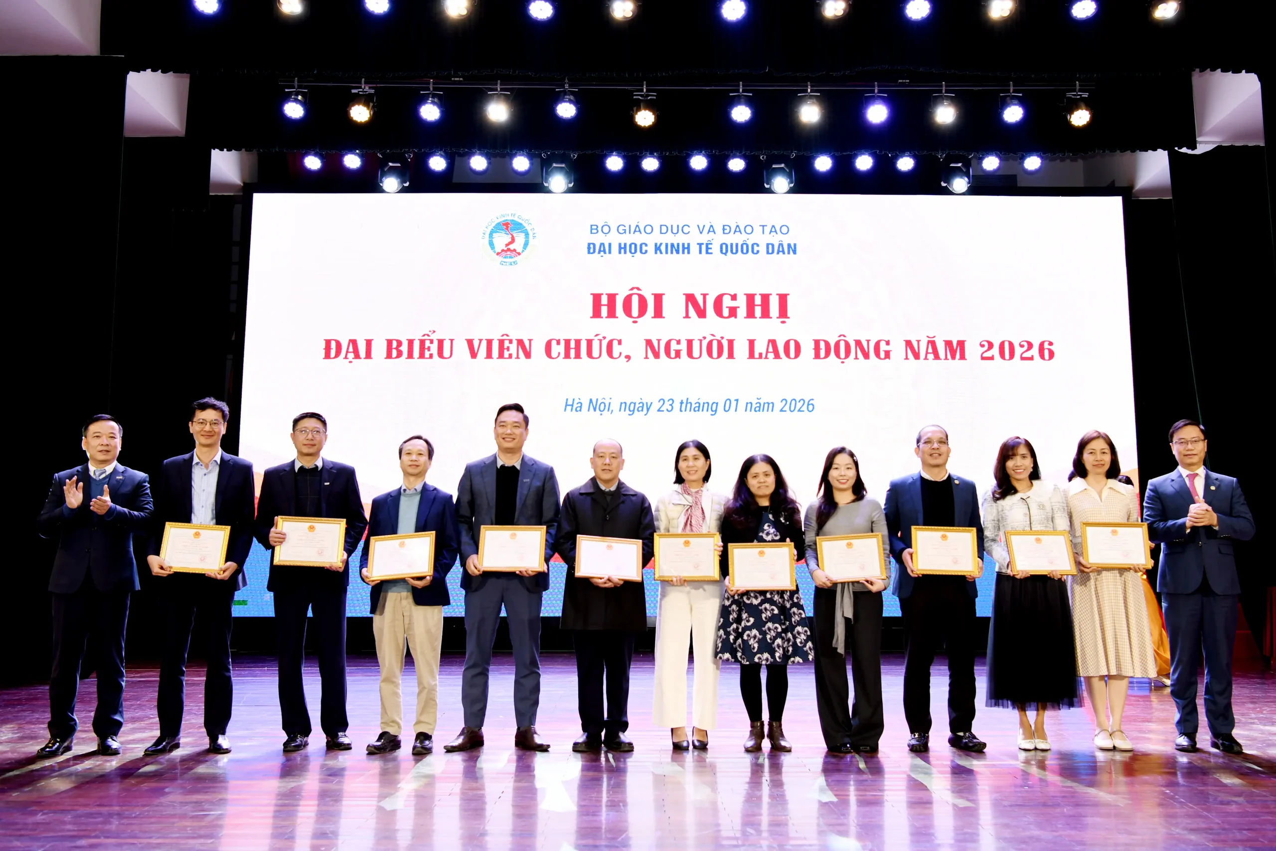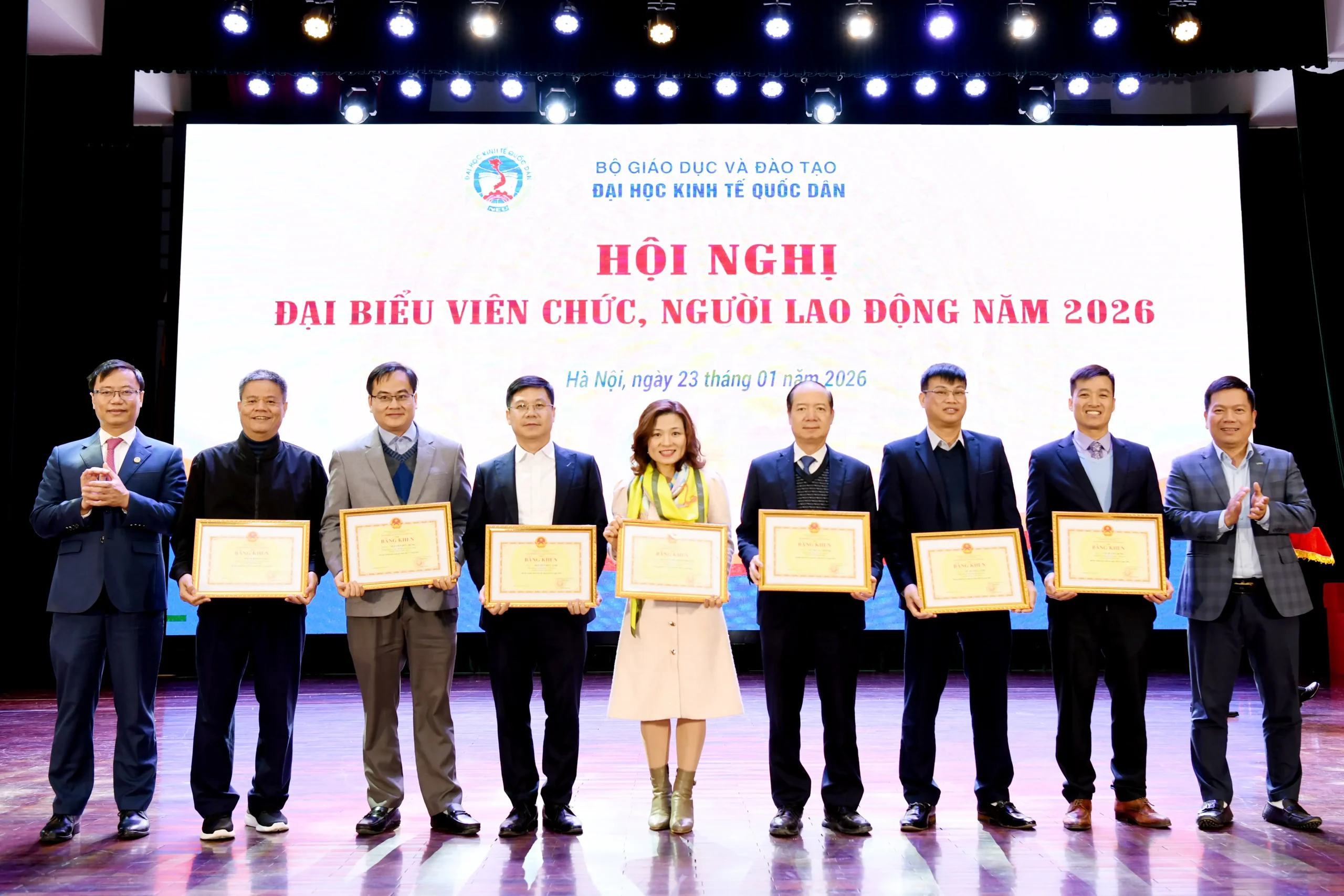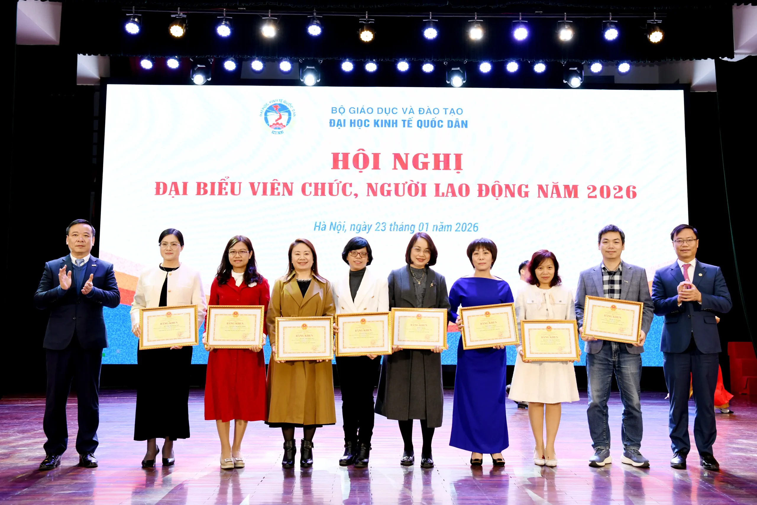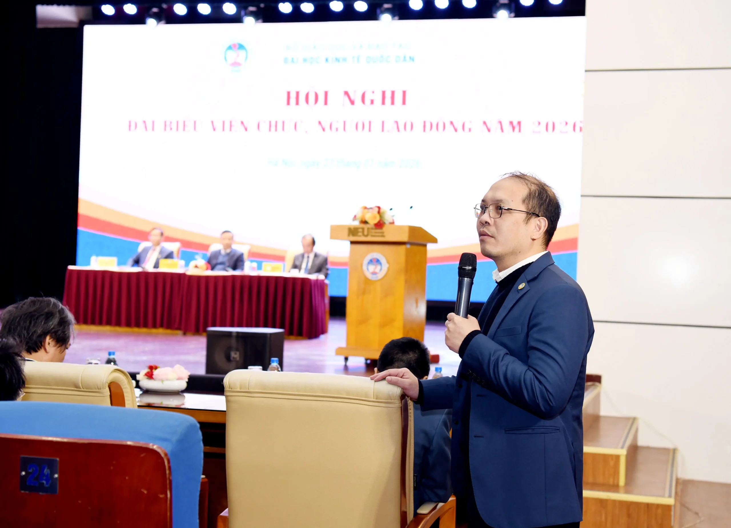 Trong không khí phấn khởi của những ngày đầu năm 2026 và hướng tới việc triển khai các nhiệm vụ trọng tâm trong giai đoạn mới, sáng ngày 23/01/2026, Đại học Kinh tế Quốc dân đã tổ chức Hội nghị Đại biểu viên chức, người lao động năm 2026. Hội nghị là dịp quan trọng để Đại học nhìn lại kết quả thực hiện nhiệm vụ trong năm qua, đồng thời thảo luận, đánh giá những khó khăn, thách thức và đề ra phương hướng, nhiệm vụ cho thời gian tới, trên tinh thần đoàn kết, dân chủ và trách nhiệm.