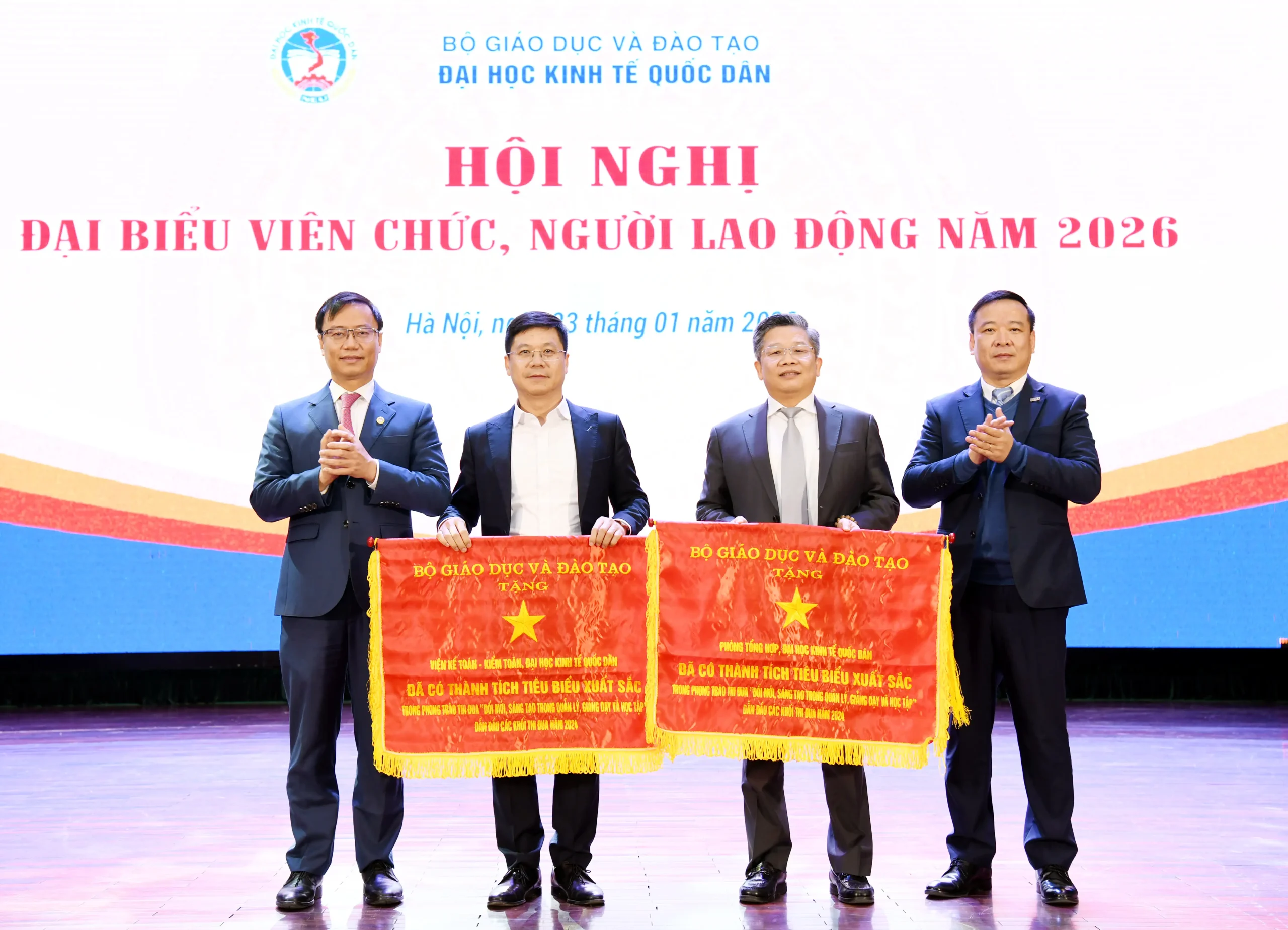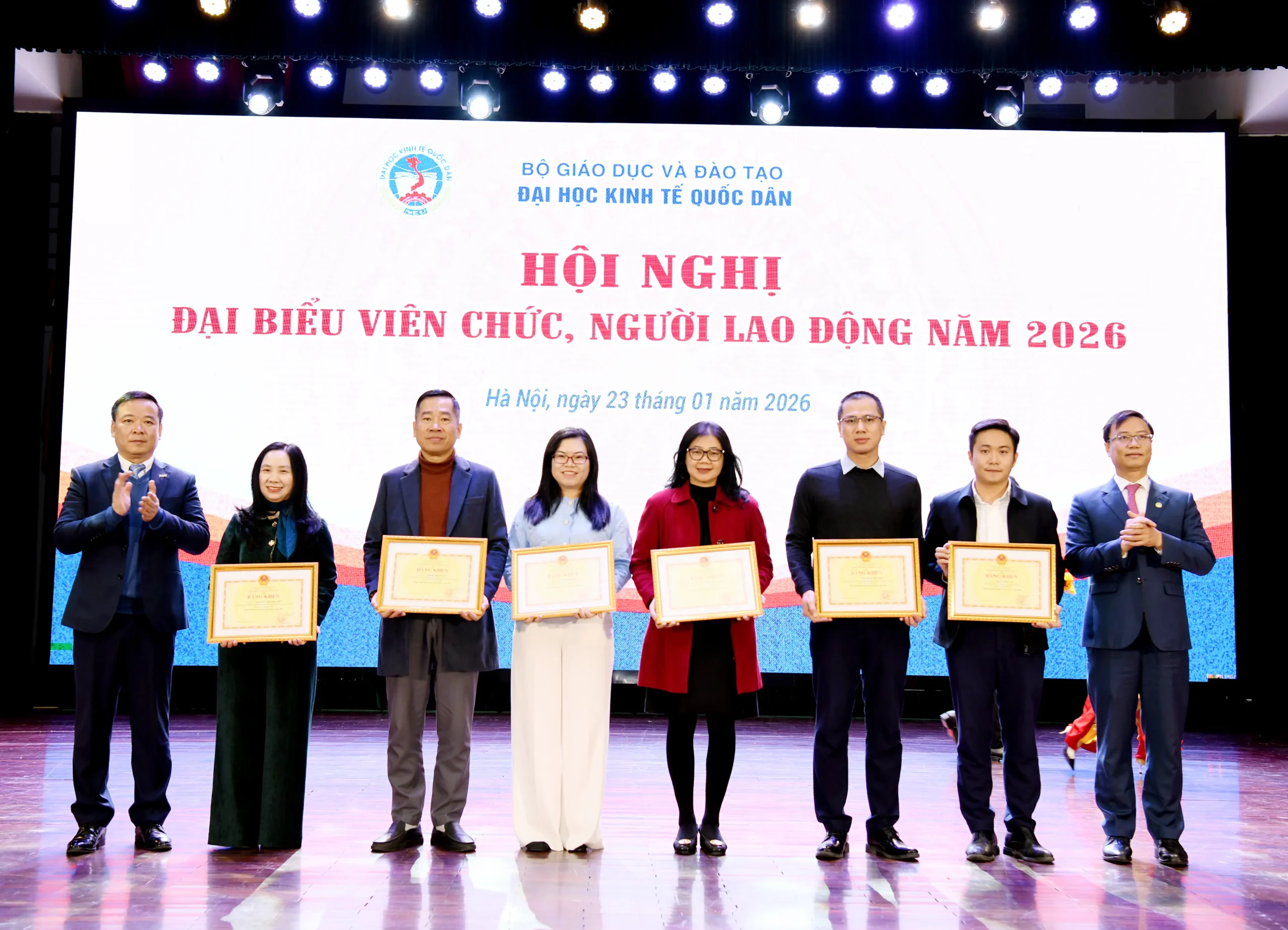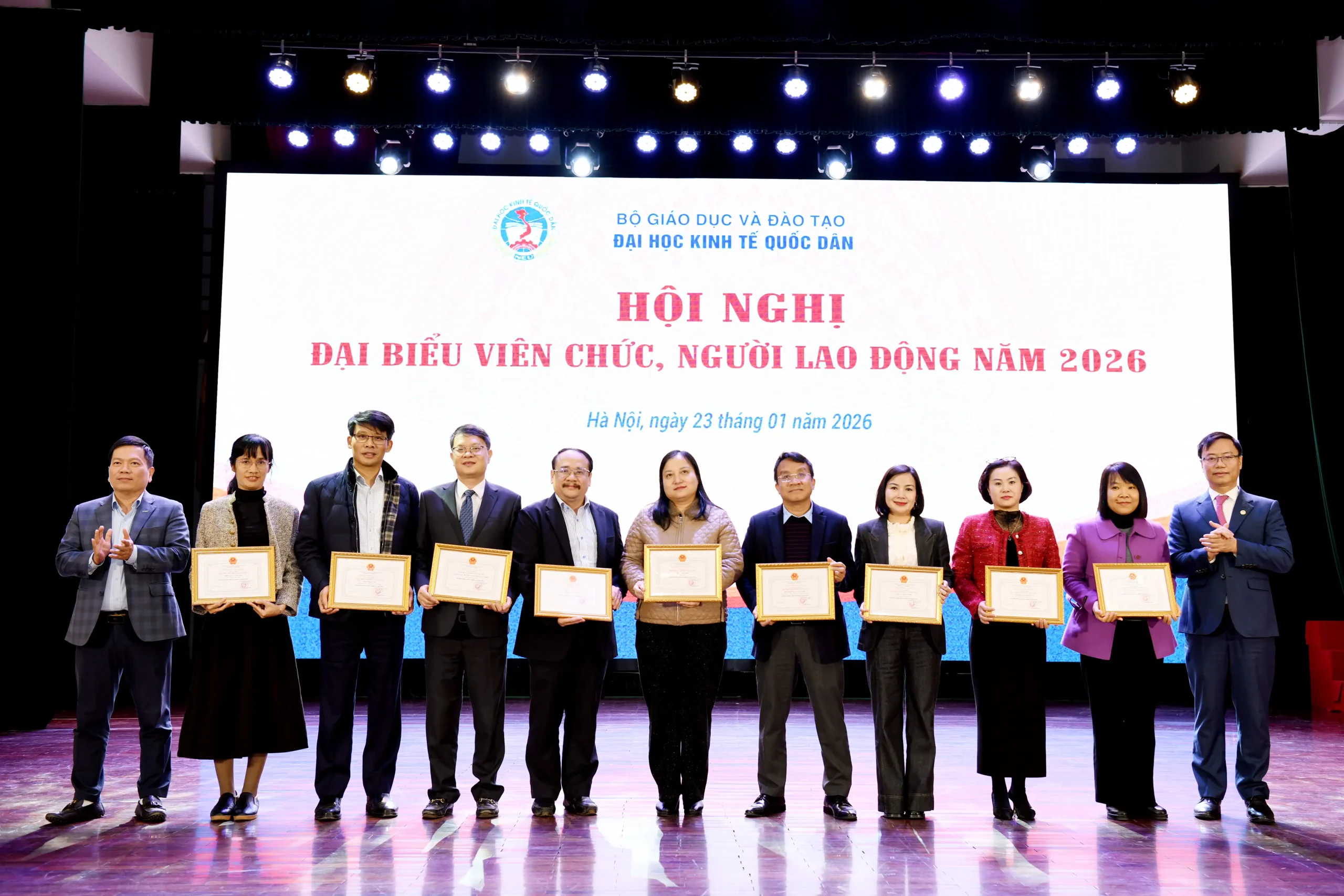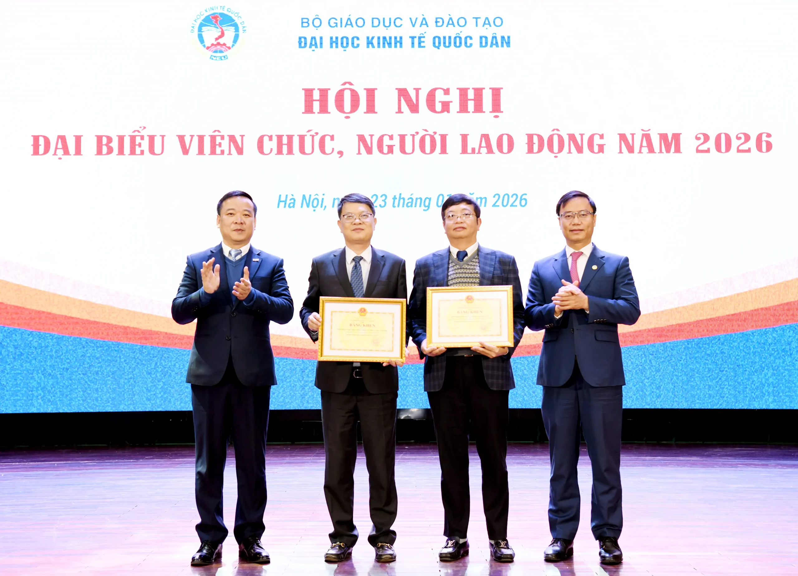 Trong không khí phấn khởi của những ngày đầu năm 2026 và hướng tới việc triển khai các nhiệm vụ trọng tâm trong giai đoạn mới, sáng ngày 23/01/2026, Đại học Kinh tế Quốc dân đã tổ chức Hội nghị Đại biểu viên chức, người lao động năm 2026. Hội nghị là dịp quan trọng để Đại học nhìn lại kết quả thực hiện nhiệm vụ trong năm qua, đồng thời thảo luận, đánh giá những khó khăn, thách thức và đề ra phương hướng, nhiệm vụ cho thời gian tới, trên tinh thần đoàn kết, dân chủ và trách nhiệm.