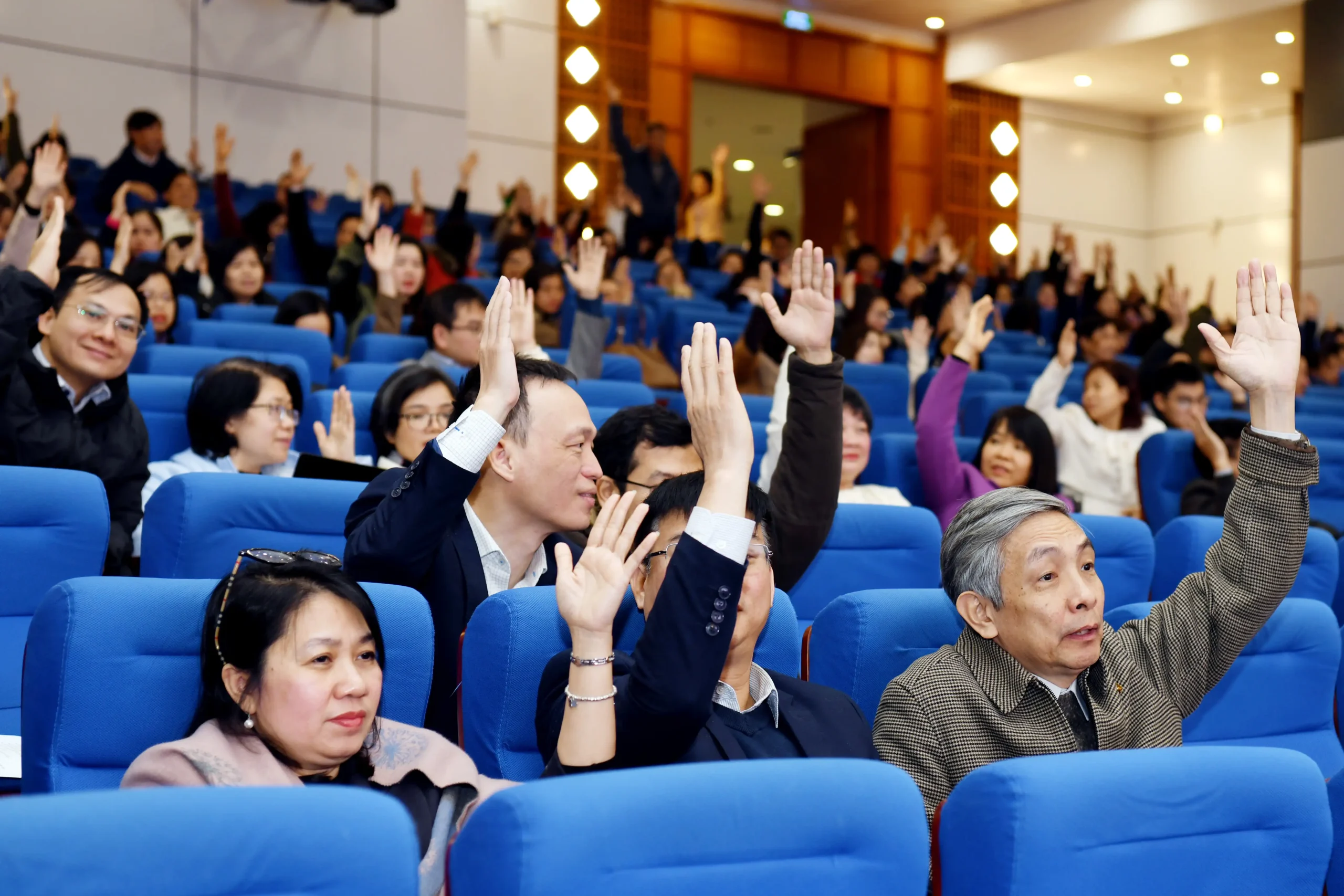 Sau hơn 4 giờ làm việc khẩn trương, nghiêm túc, Hội nghị đã kết thúc trong không khí phấn khởi với tinh thần quyết tâm cao từ toàn thể đại biểu tham dự, tán thành và thống nhất thông qua các nội dung dự thảo Nghị quyết Hội nghị Đại biểu viên chức, người lao động năm 2026.
