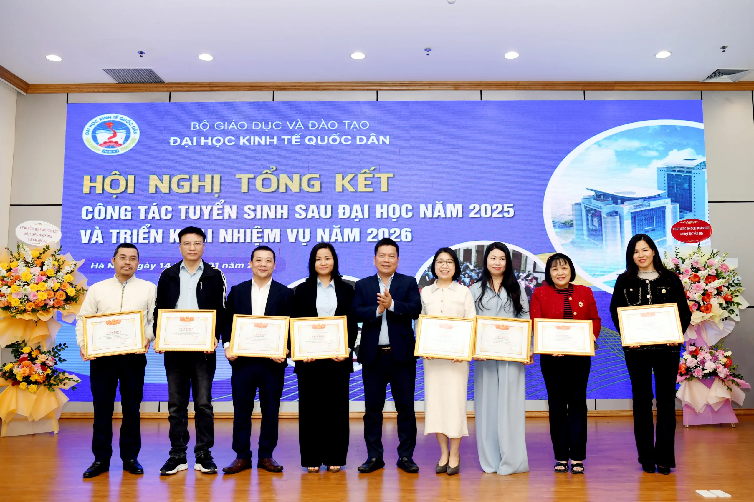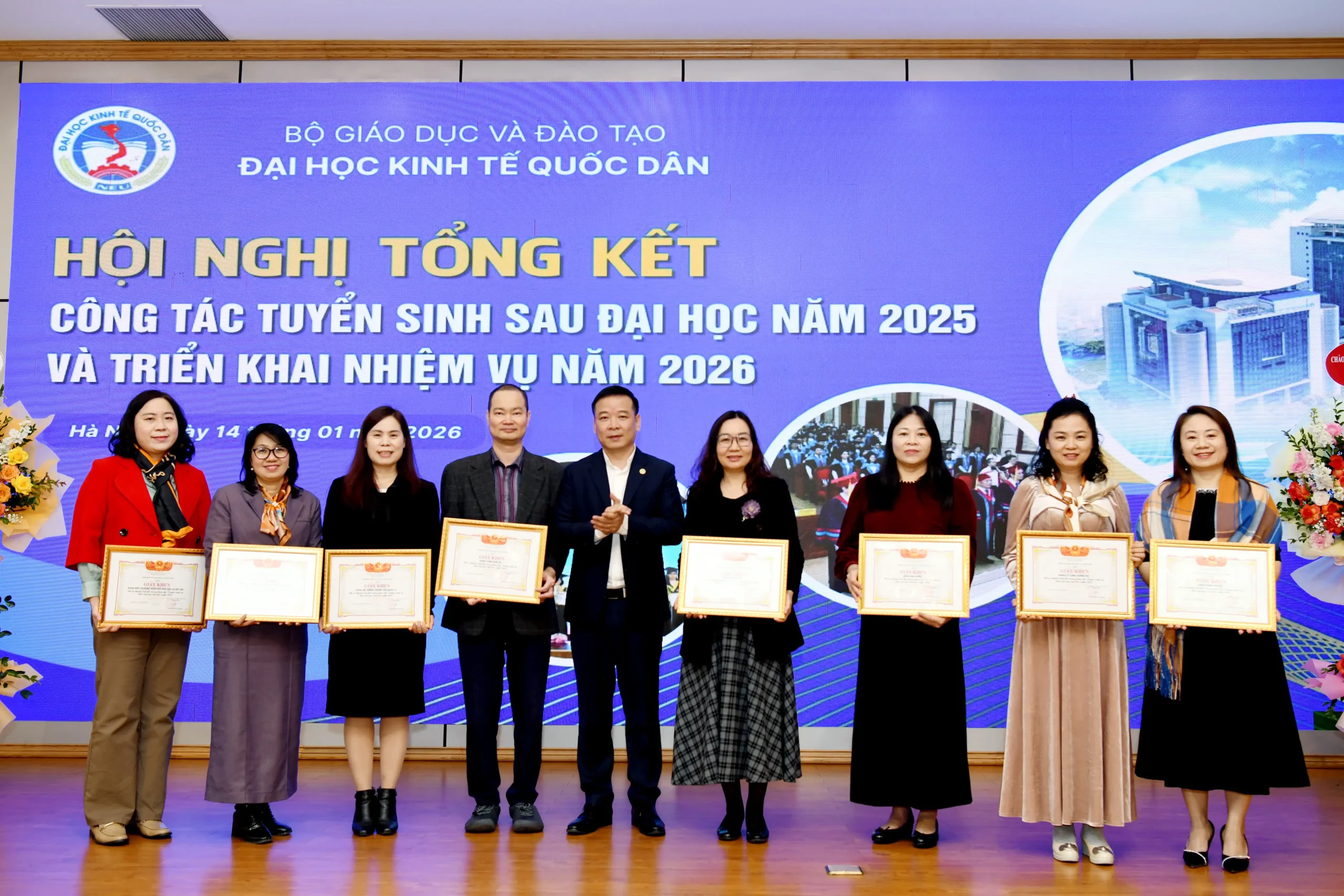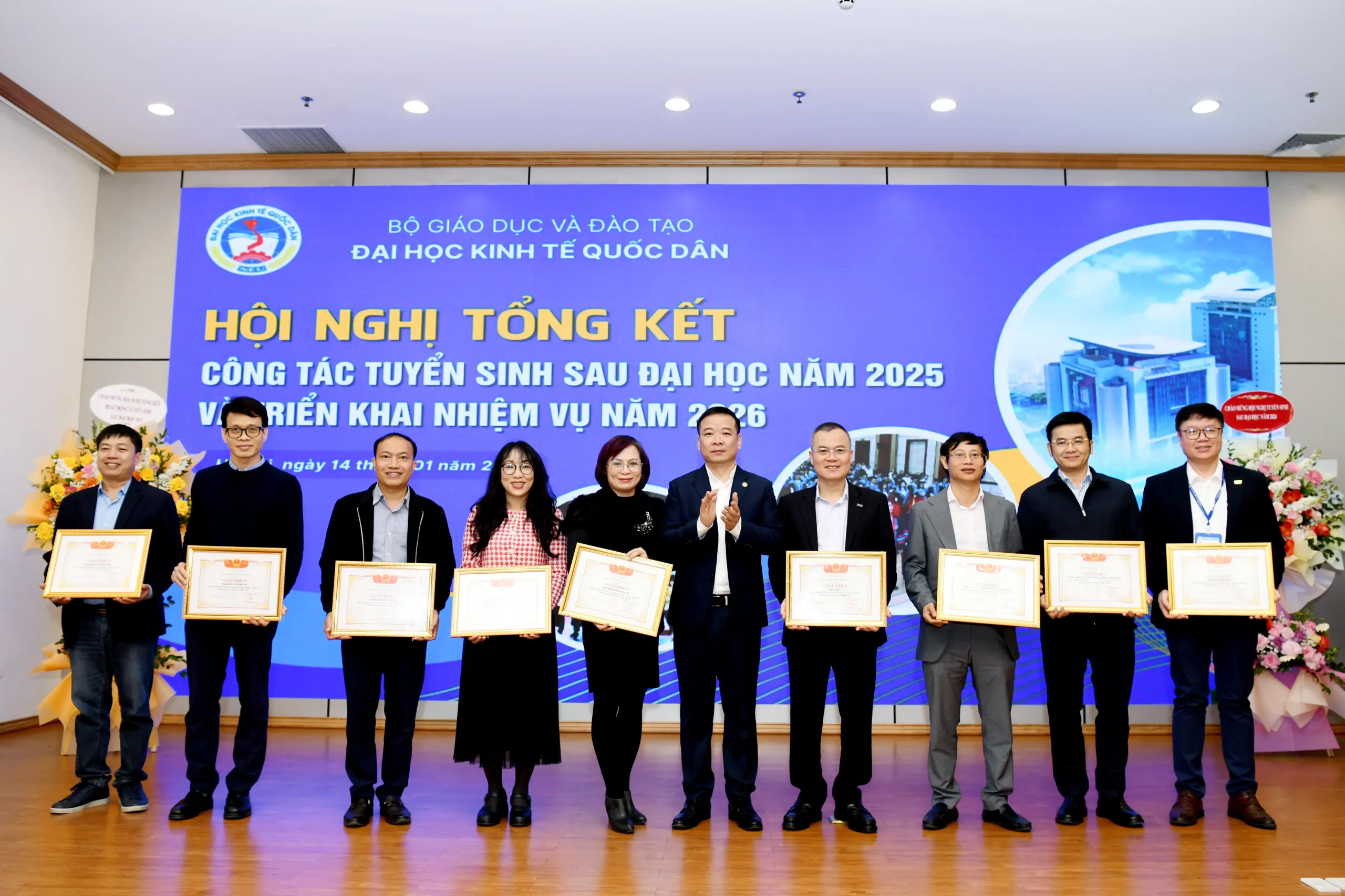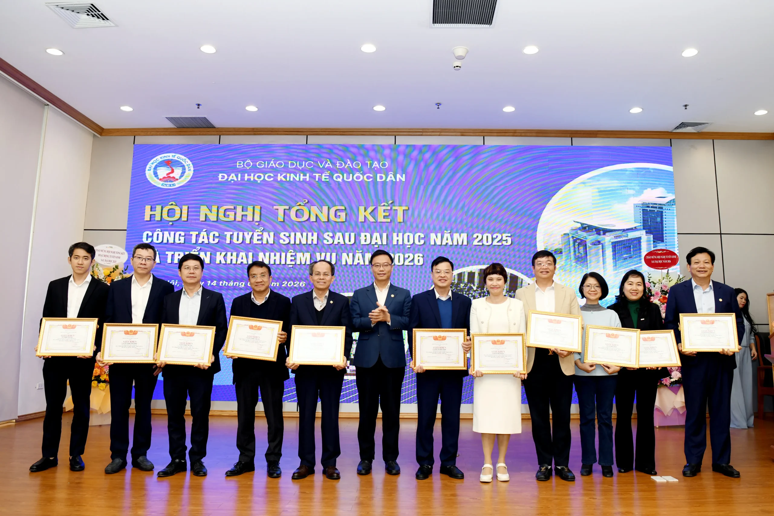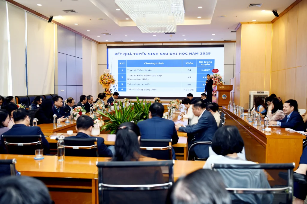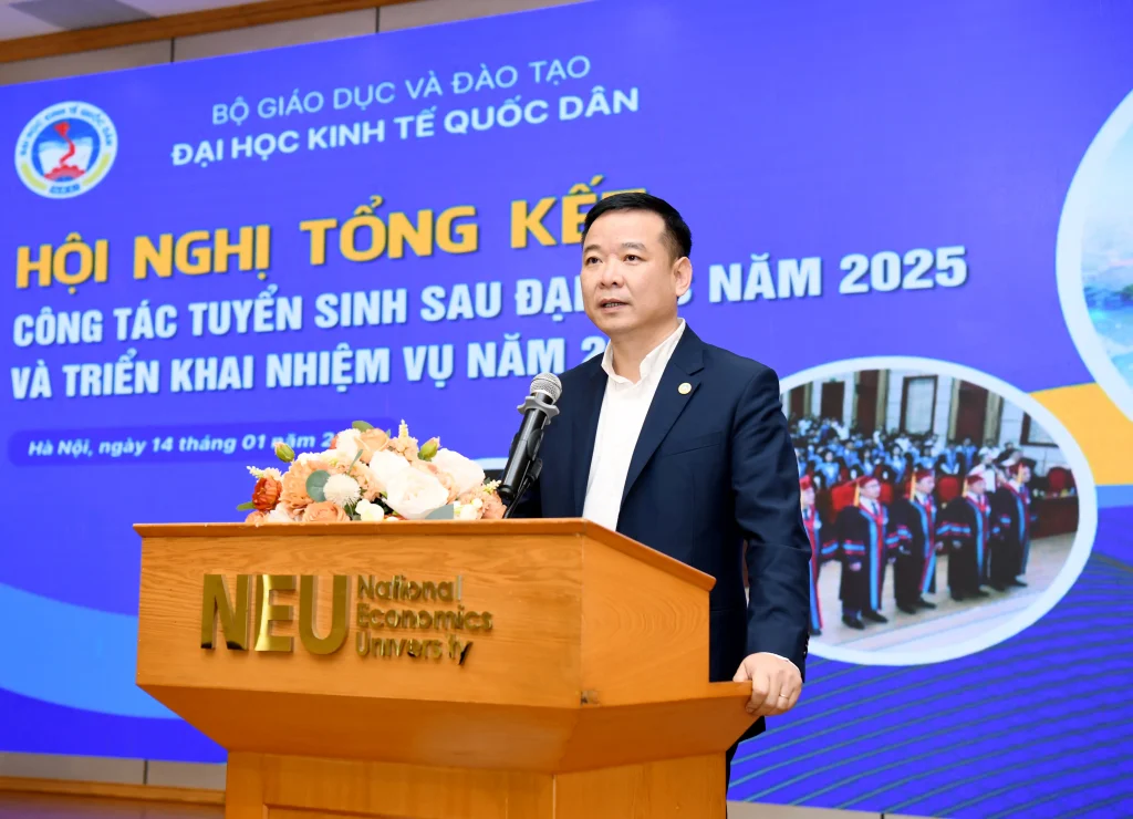 Sáng ngày 14/01/2026, Đại học Kinh tế Quốc dân đã tổ chức Hội nghị tổng kết công tác tuyển sinh sau đại học năm 2025 và triển khai nhiệm vụ trọng tâm năm 2026.