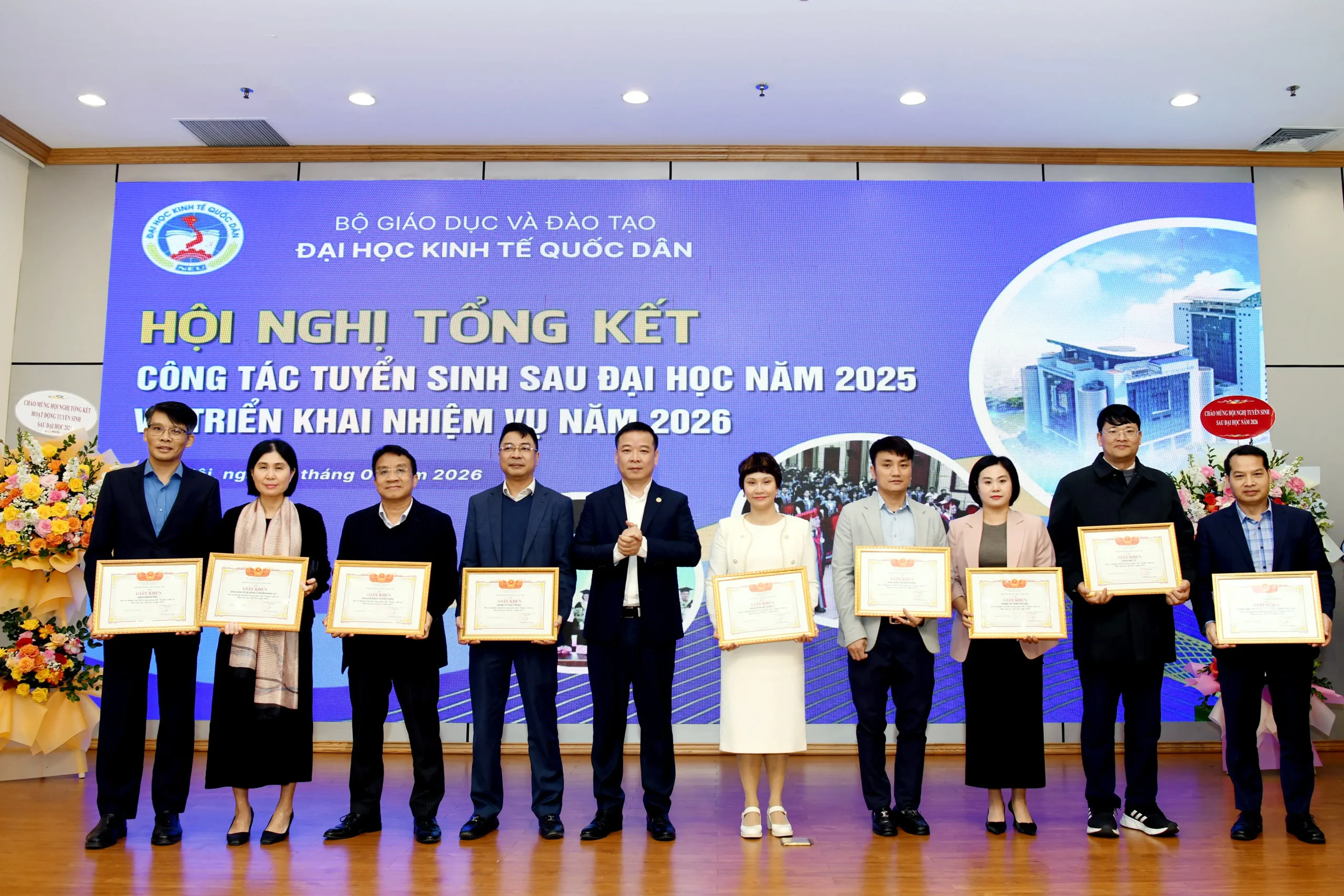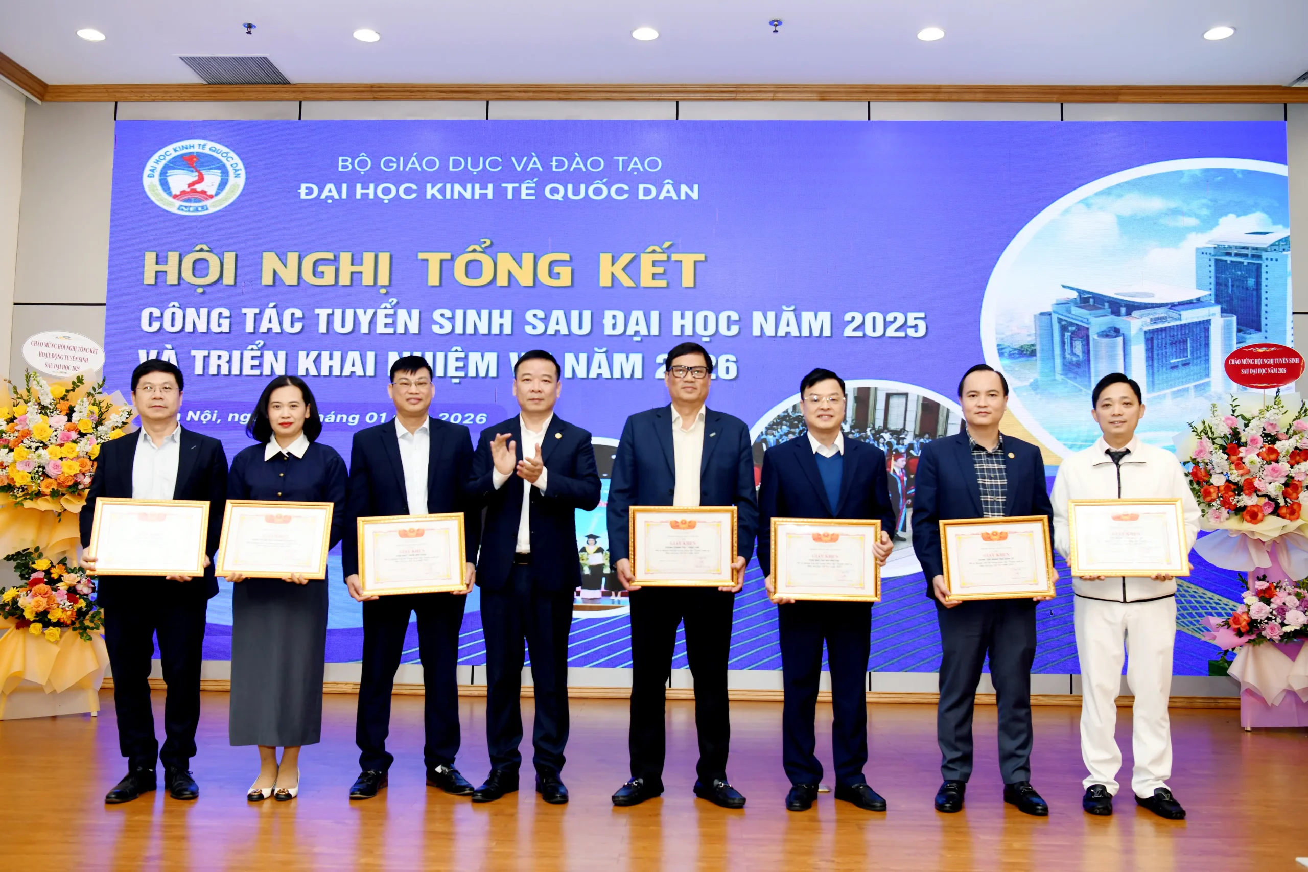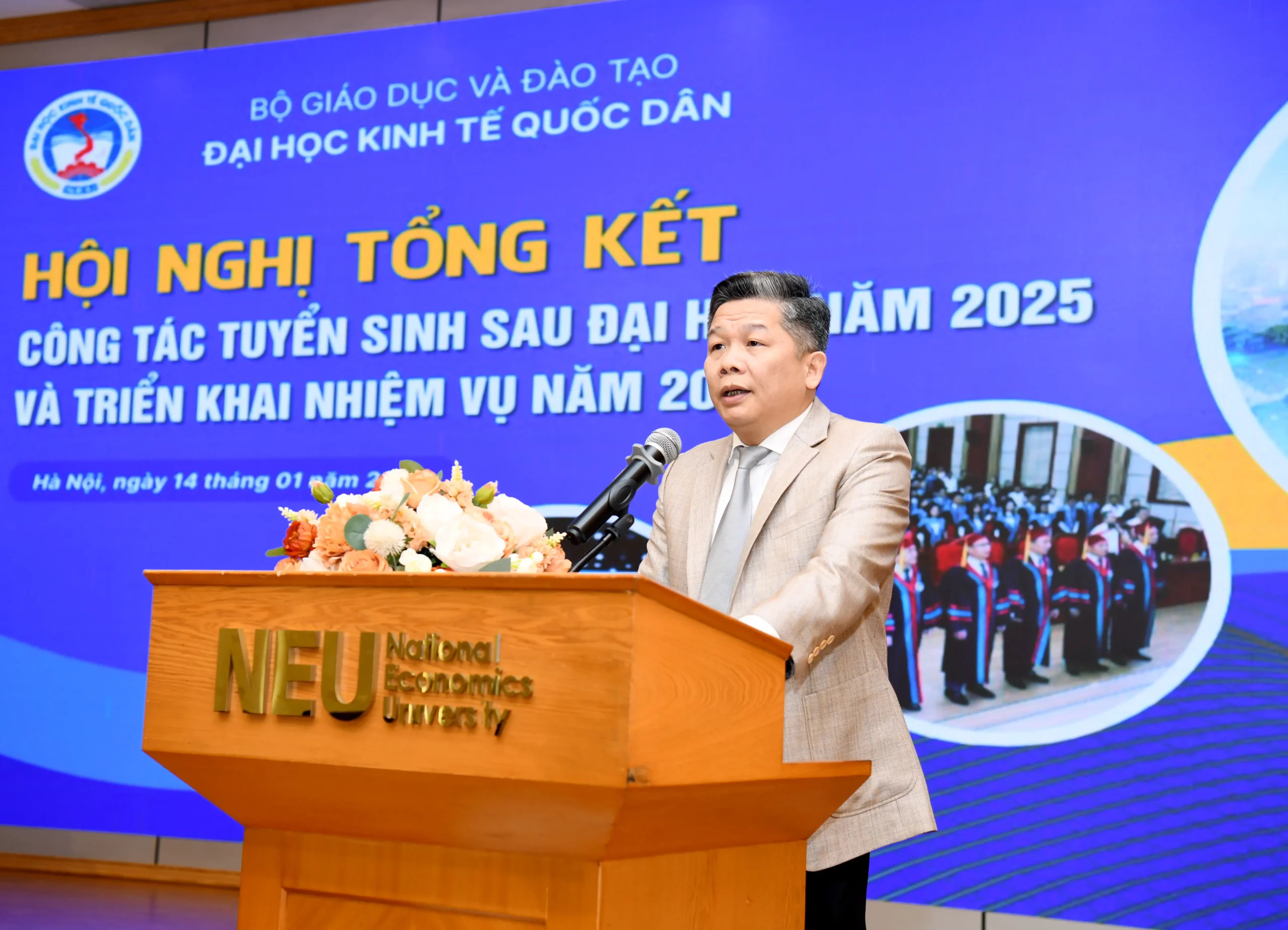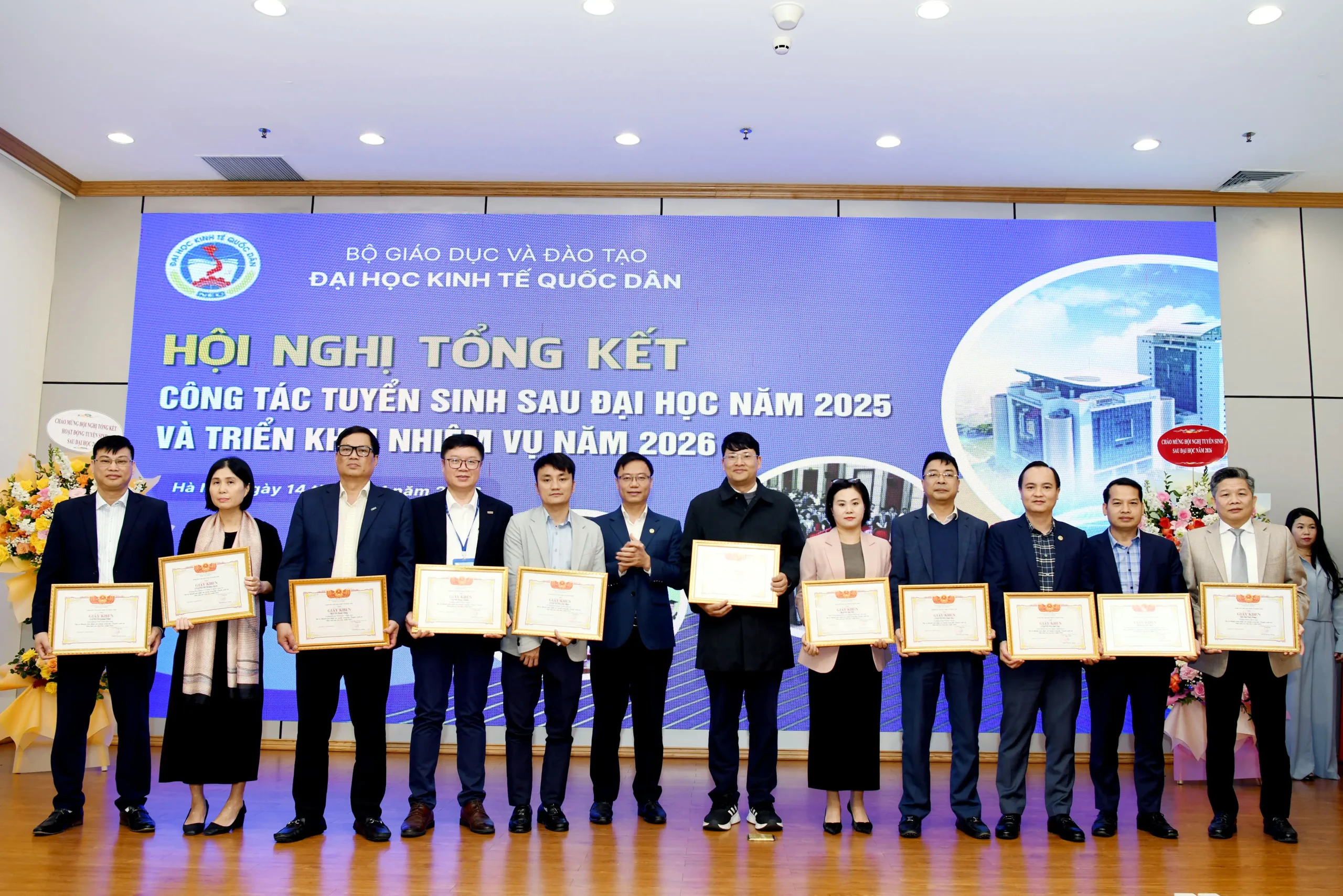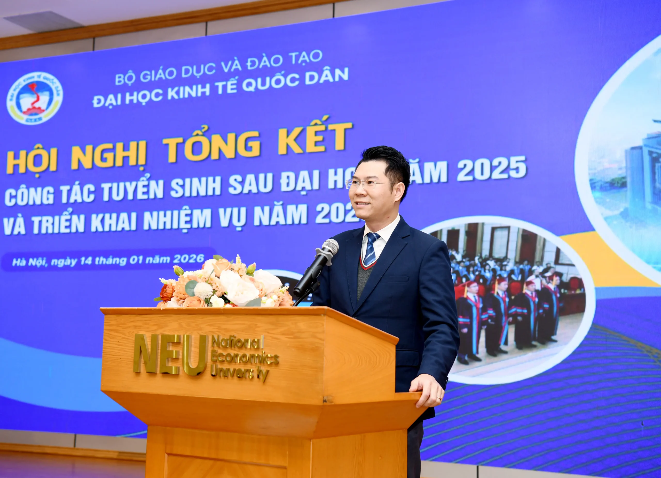 Sáng ngày 14/01/2026, Đại học Kinh tế Quốc dân đã tổ chức Hội nghị tổng kết công tác tuyển sinh sau đại học năm 2025 và triển khai nhiệm vụ trọng tâm năm 2026.