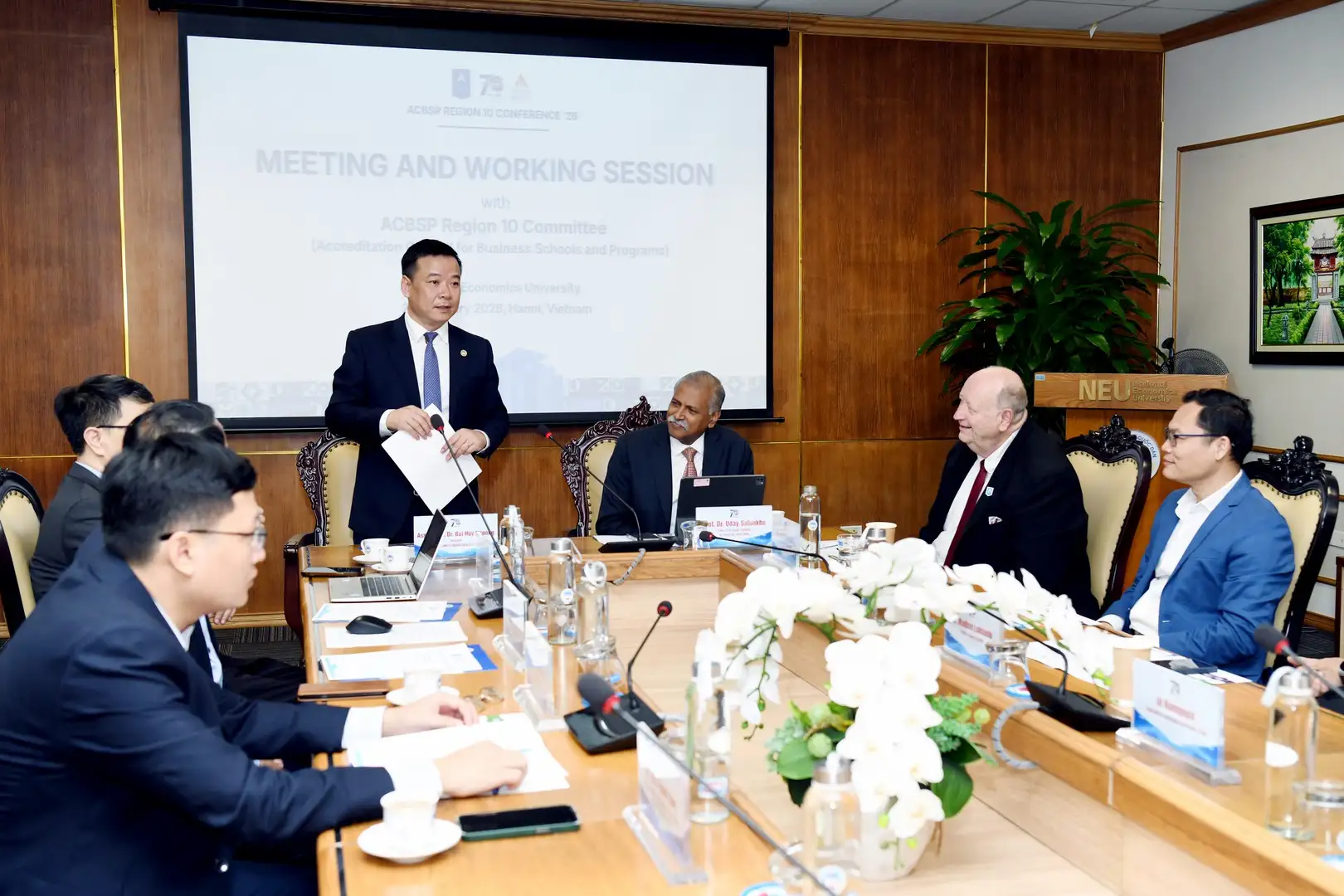 Lãnh đạo NEU và ACBSP trao đổi và làm việc trước ngày Hội thảo