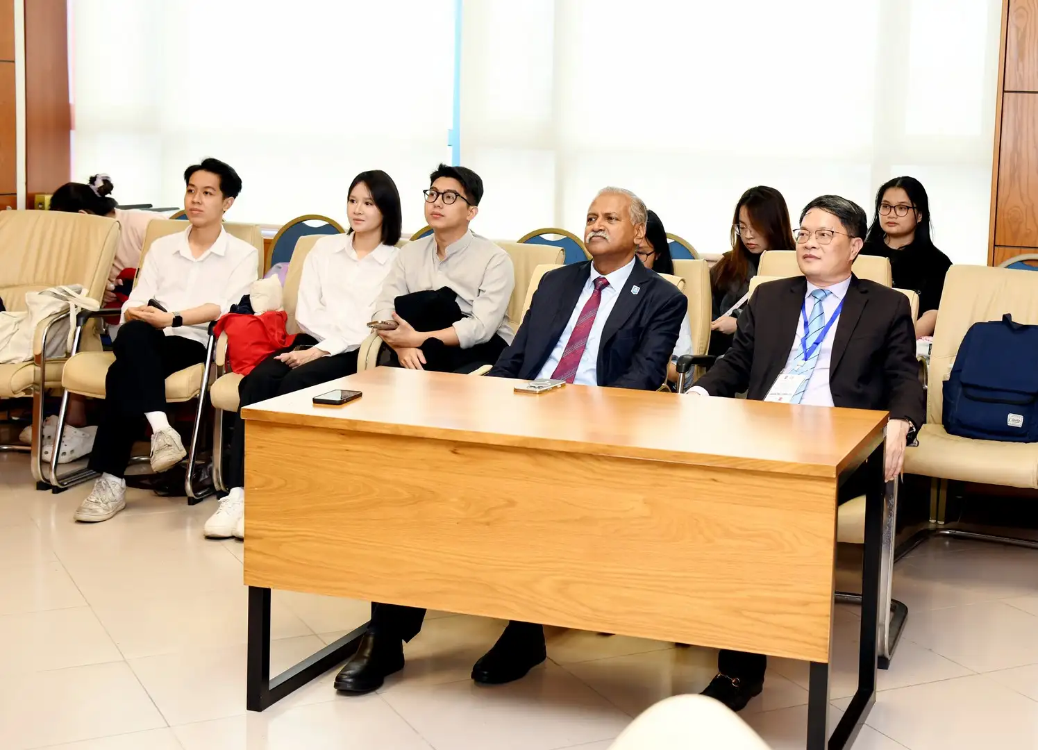 Về phía đại biểu ngoài trường có: PGS.TS Phạm Quốc Khánh – Phó Cục trưởng Cục Quản lý Chất lượng, Bộ Giáo dục và Đào tạo; TS. Trần Ngọc Tuấn – Phó Hiệu trưởng Trường Đại học FPT; PGS.TS Bùi Phú Doanh – Phó Hiệu trưởng Trường Đại học Xây dựng Hà Nội.