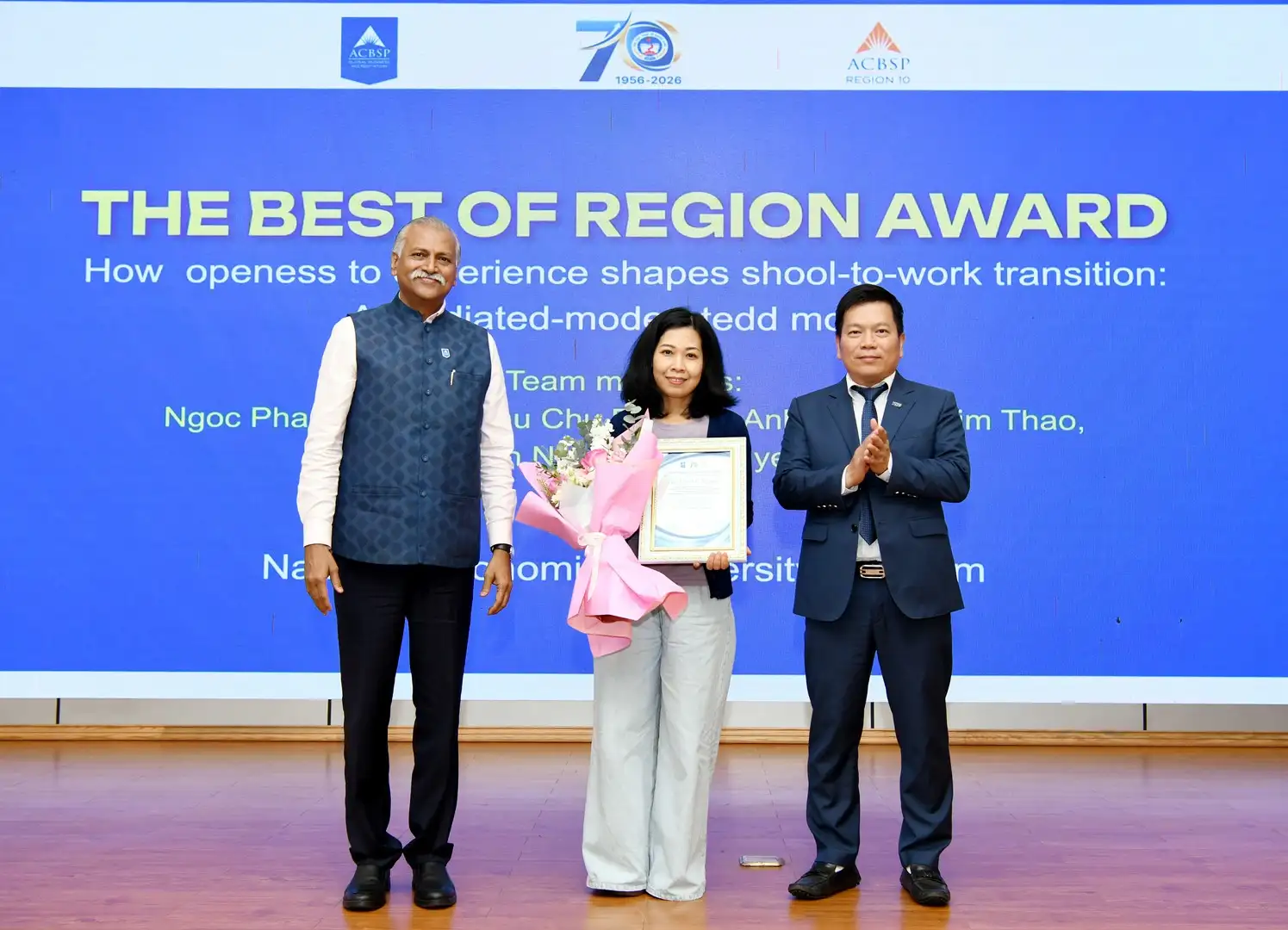 Lãnh đạo ACBSP và NEU trao giấy chứng nhận trao chứng nhận cho các tác giả có bài viết xuất sắc nhất