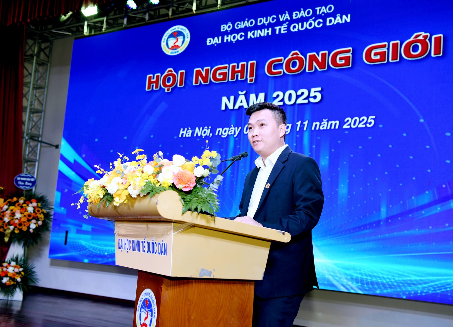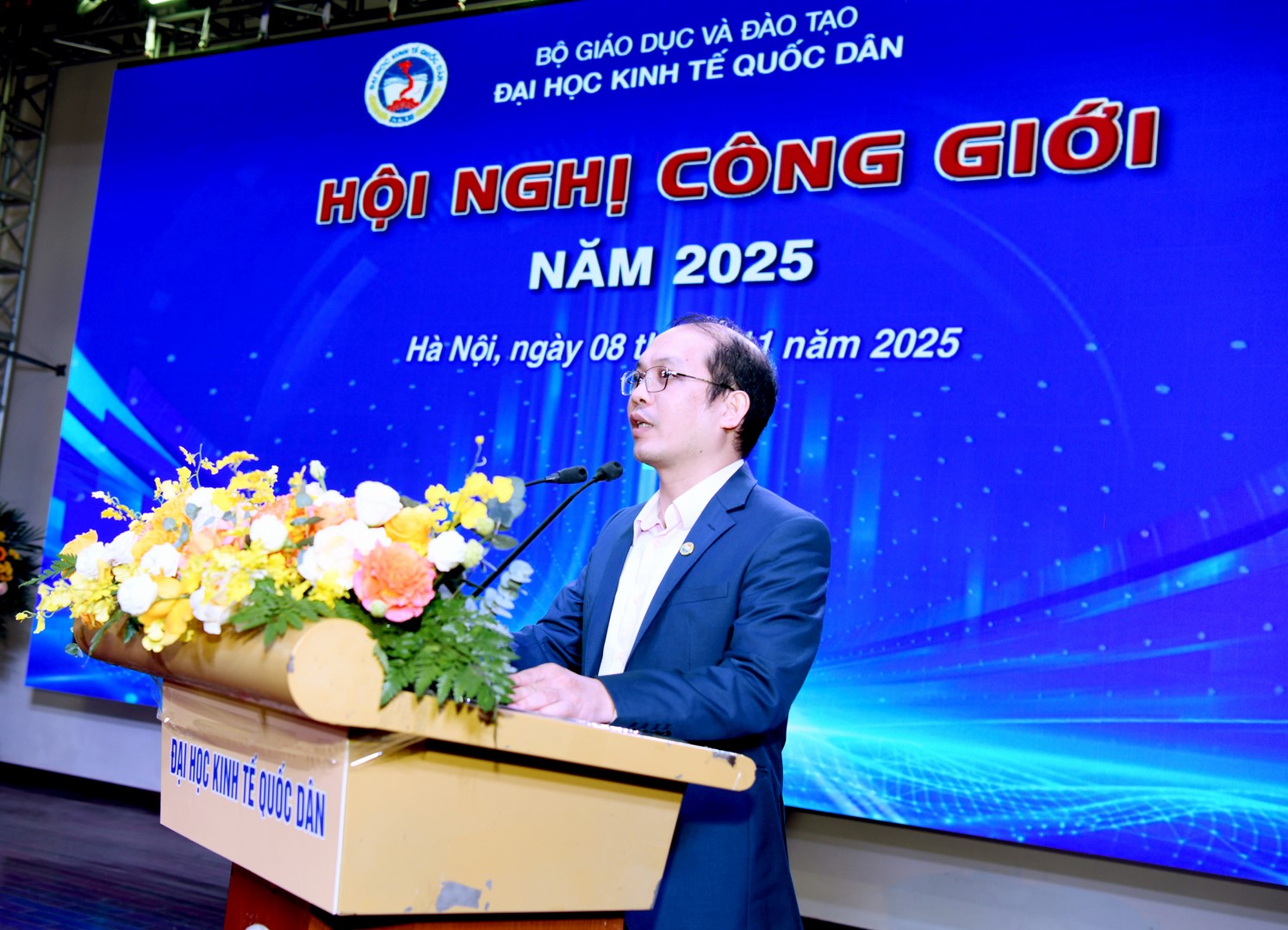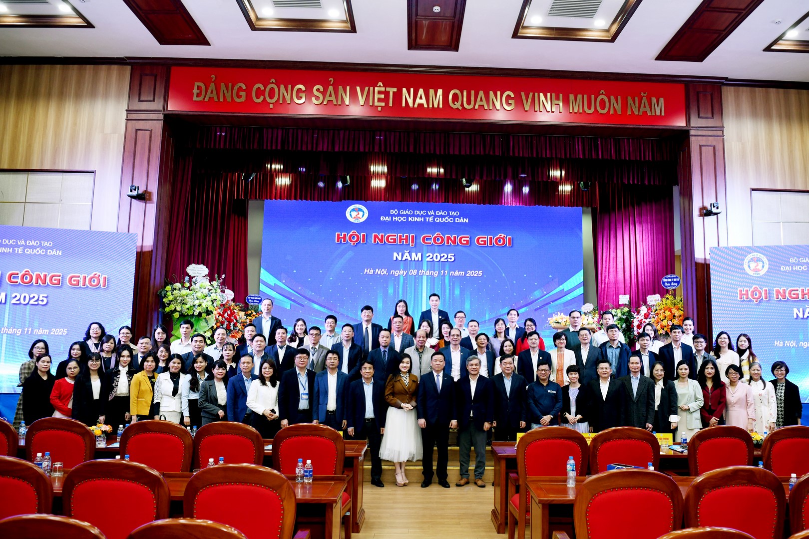 Sáng nay (8/11), Đại học Kinh tế quốc dân đã tổ chức Hội nghị Công giới năm 2025 và diễn đàn trao đổi với chủ đề “Triển khai tích hợp nội dung về phân tích dữ liệu và trí tuệ nhân tạo, tinh thần doanh nhân và khởi nghiệp vào chương trình đào tạo, góp phần nâng cao chất lượng đào tạo tại Đại học Kinh tế Quốc dân”.