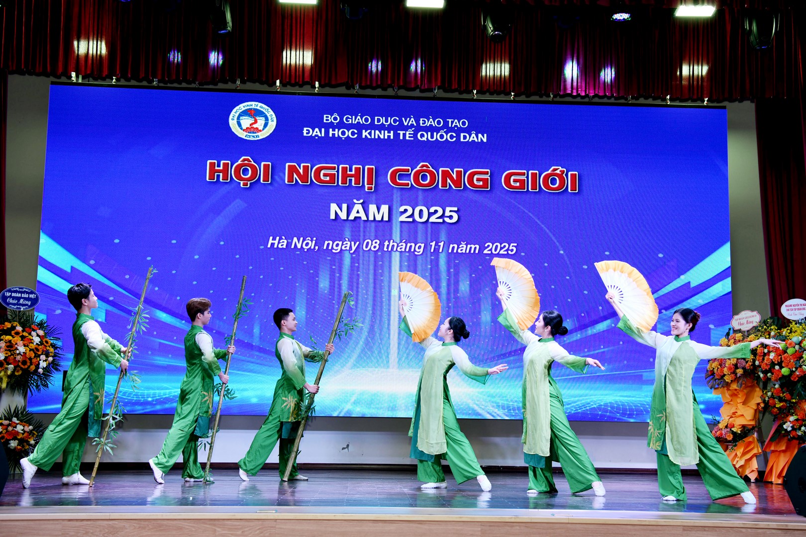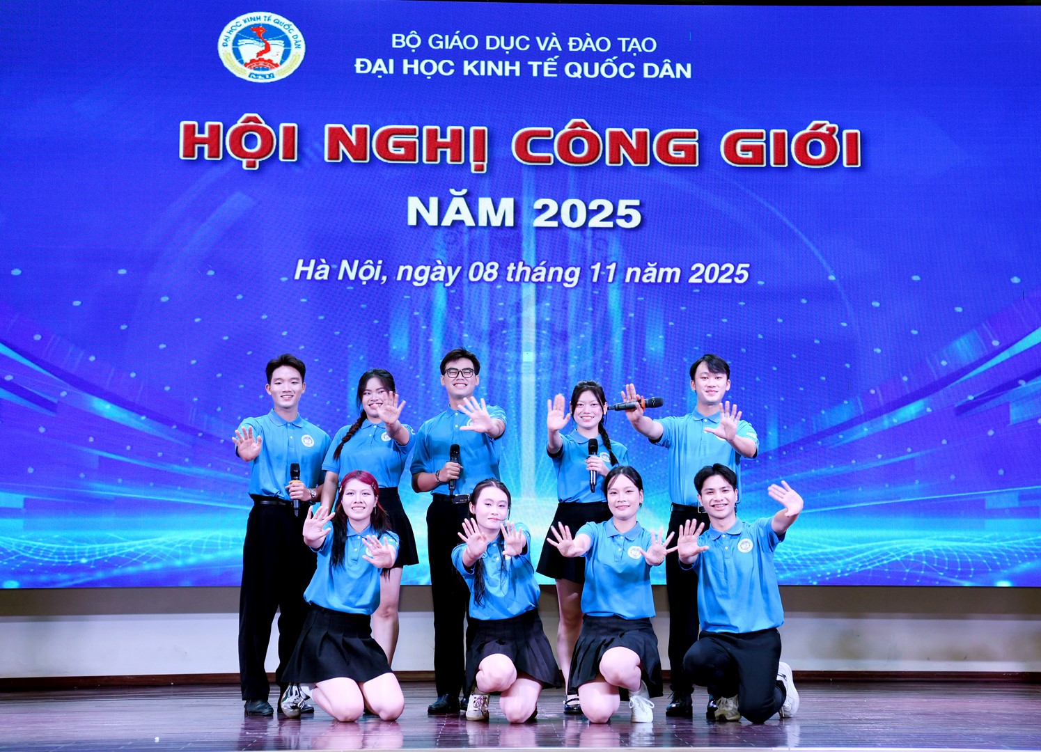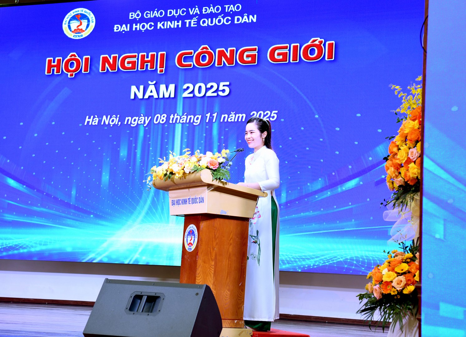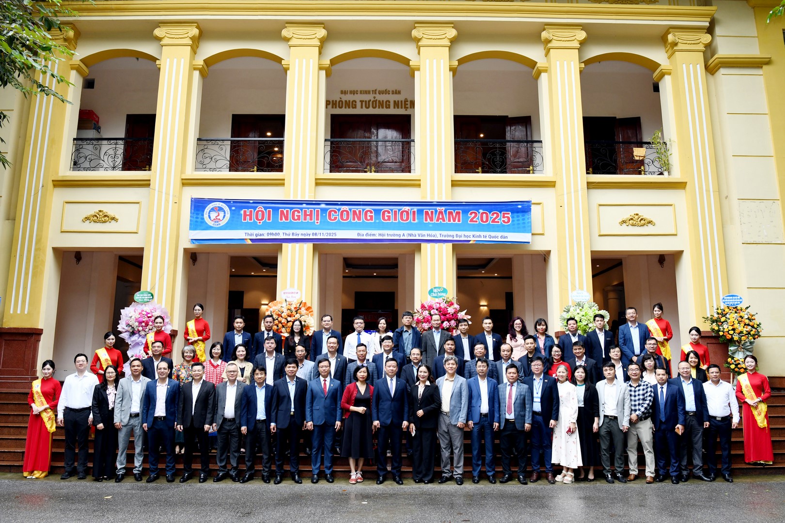 Sáng nay (8/11), Đại học Kinh tế quốc dân đã tổ chức Hội nghị Công giới năm 2025 và diễn đàn trao đổi với chủ đề “Triển khai tích hợp nội dung về phân tích dữ liệu và trí tuệ nhân tạo, tinh thần doanh nhân và khởi nghiệp vào chương trình đào tạo, góp phần nâng cao chất lượng đào tạo tại Đại học Kinh tế Quốc dân”.