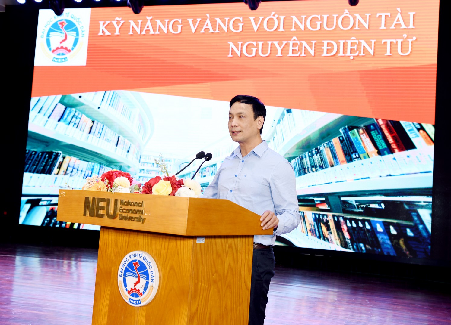 Phát biểu khai mạc Hội nghị, GS.TS Nguyễn Thành Hiếu – Phó Giám đốc Đại học Kinh tế Quốc dân nhấn mạnh tầm quan trọng của việc chuyển đổi thư viện từ mô hình thụ động sang mô hình chủ động, hướng tới người học. Qua đó nhấn mạnh, mục tiêu của Đại học là giúp người học biết cách truy cập tài liệu chính xác, trực diện và hiệu quả nhất, phục vụ cho việc học tập và nghiên cứu. Để đạt được điều đó, đốc Đại học Kinh tế Quốc dân tổ chức các buổi tập huấn nhỏ và thường xuyên ngay tại thư viện, bên cạnh những chương trình quy mô lớn, nhằm đáp ứng nhu cầu cụ thể của từng nhóm sinh viên và tối ưu hóa hiệu quả đầu tư vào nguồn tài nguyên điện tử.