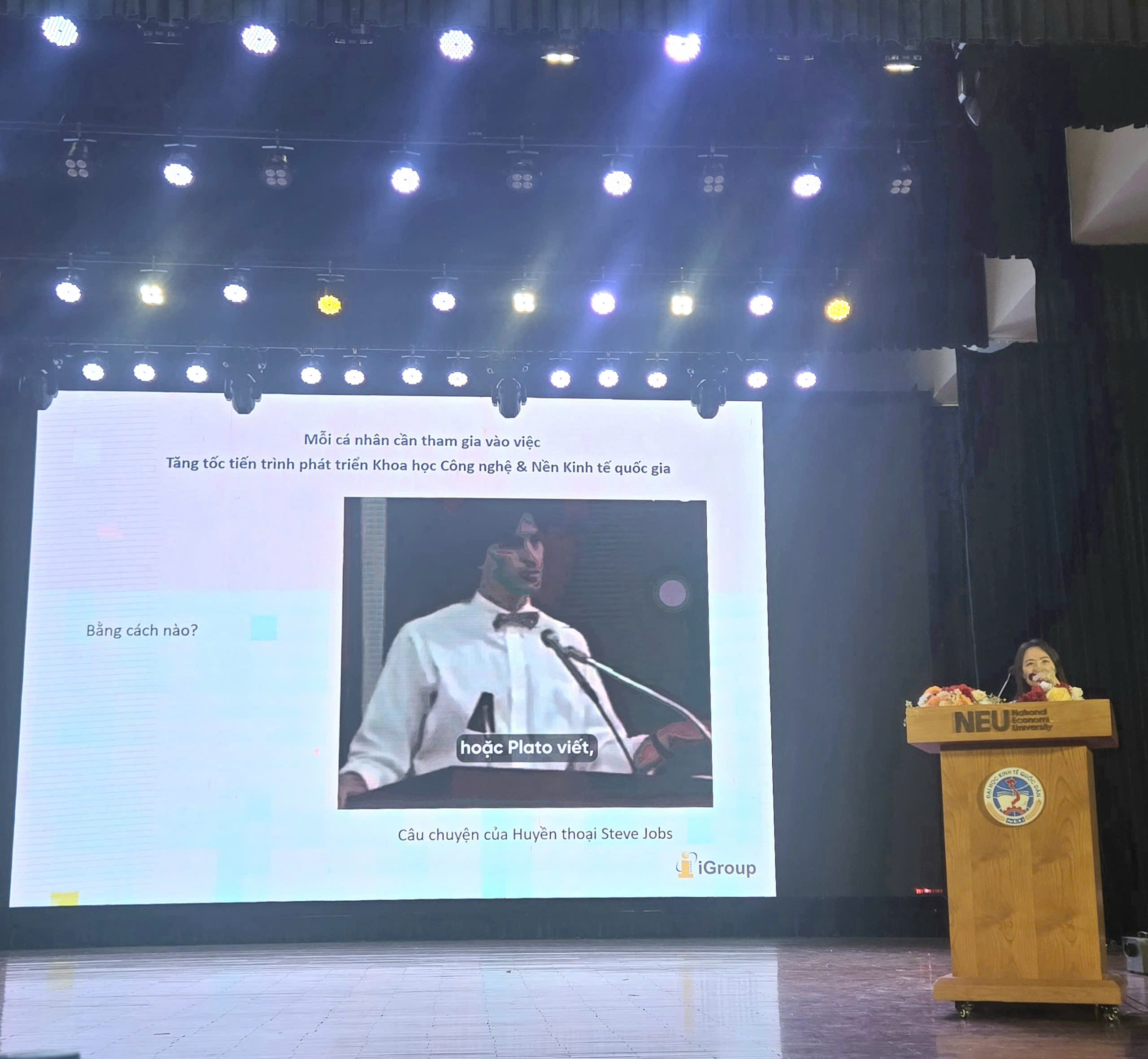 Bà Linh Nguyễn – Giám đốc dự án – VP iGroup Việt Nam trình bày tham luận:“Khai thác các nguồn CSDL tại trường Đại học hỗ trợ nghề nghiệp tương lai”