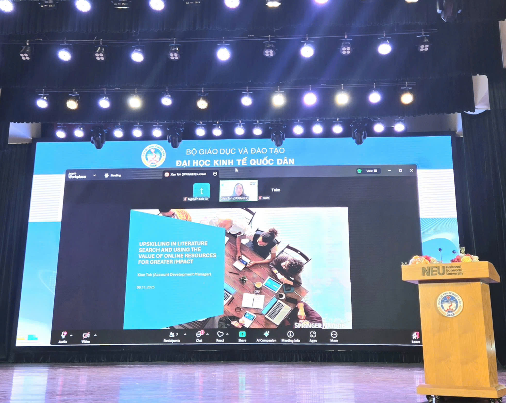 Ngày 06/11/2025, Đại học Kinh tế Quốc dân tổ chức Hội nghị giới thiệu, hướng dẫn khai thác và sử dụng các nguồn tài nguyên điện tử dành cho cán bộ giảng viên và sinh viên toàn Đại học, nhằm nâng cao nhận thức và kỹ năng khai thác hiệu quả nguồn tài nguyên điện tử, phục vụ học tập, giảng dạy và nghiên cứu khoa học.