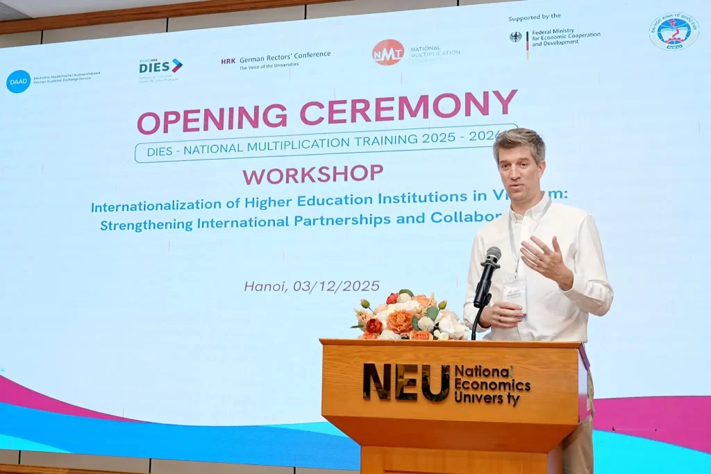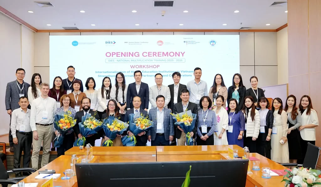 Trong bối cảnh giáo dục đại học Việt Nam đang đẩy mạnh hội nhập quốc tế theo định hướng của Chính phủ, việc nâng cao năng lực chuyên môn và kỹ năng vận hành cho đội ngũ làm công tác hợp tác quốc tế trở thành yêu cầu cấp thiết. Với gần 30 năm kinh nghiệm trong quản lý và triển khai các chương trình liên kết đào tạo quốc tế, Viện Đào tạo Quốc tế đã xuất sắc vượt qua nhiều quốc gia để nhận được tài trợ của DAAD, qua đó triển khai khóa tập huấn nhằm mang đến cho cán bộ các trường đại học tại Việt Nam cơ hội tiếp cận kiến thức cập nhật, kỹ năng thực hành và kinh nghiệm quốc tế hóa từ chuyên gia quốc tế.