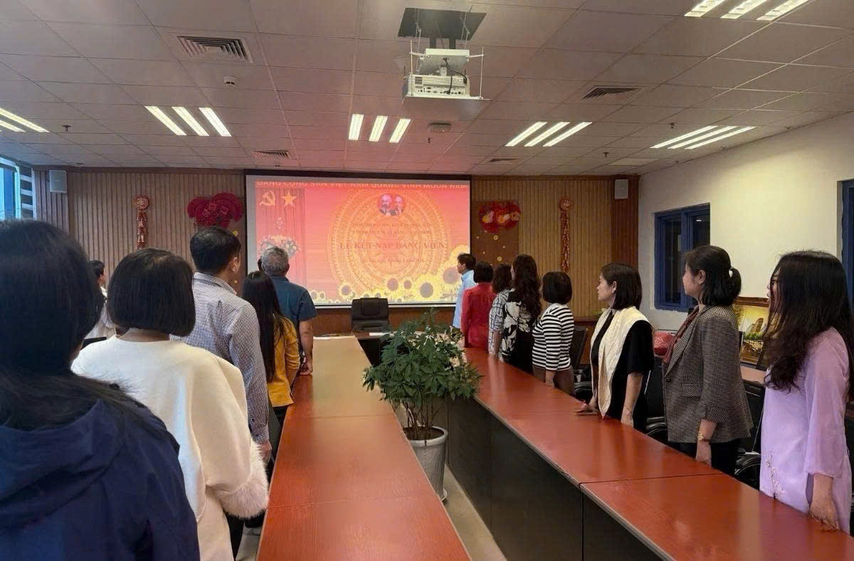 Ảnh: Không khí trang nghiêm, tự hào tại Lễ kết nạp Đảng viên mới của Chi bộ Viện Ngân hàng – Tài chính.