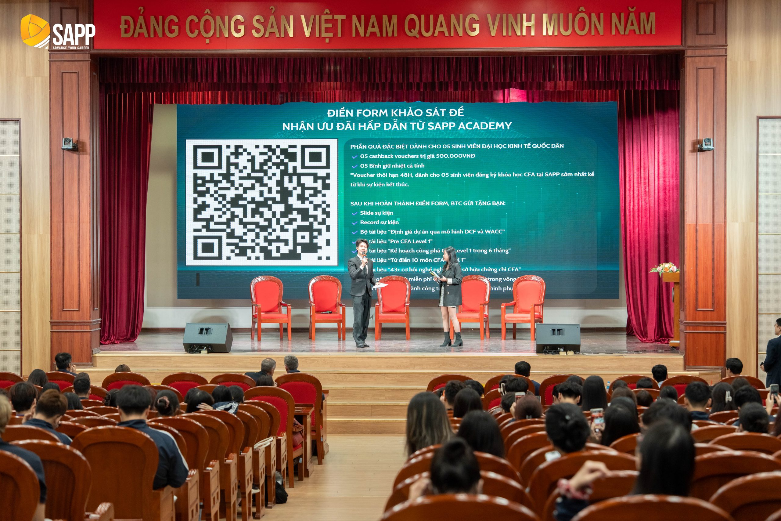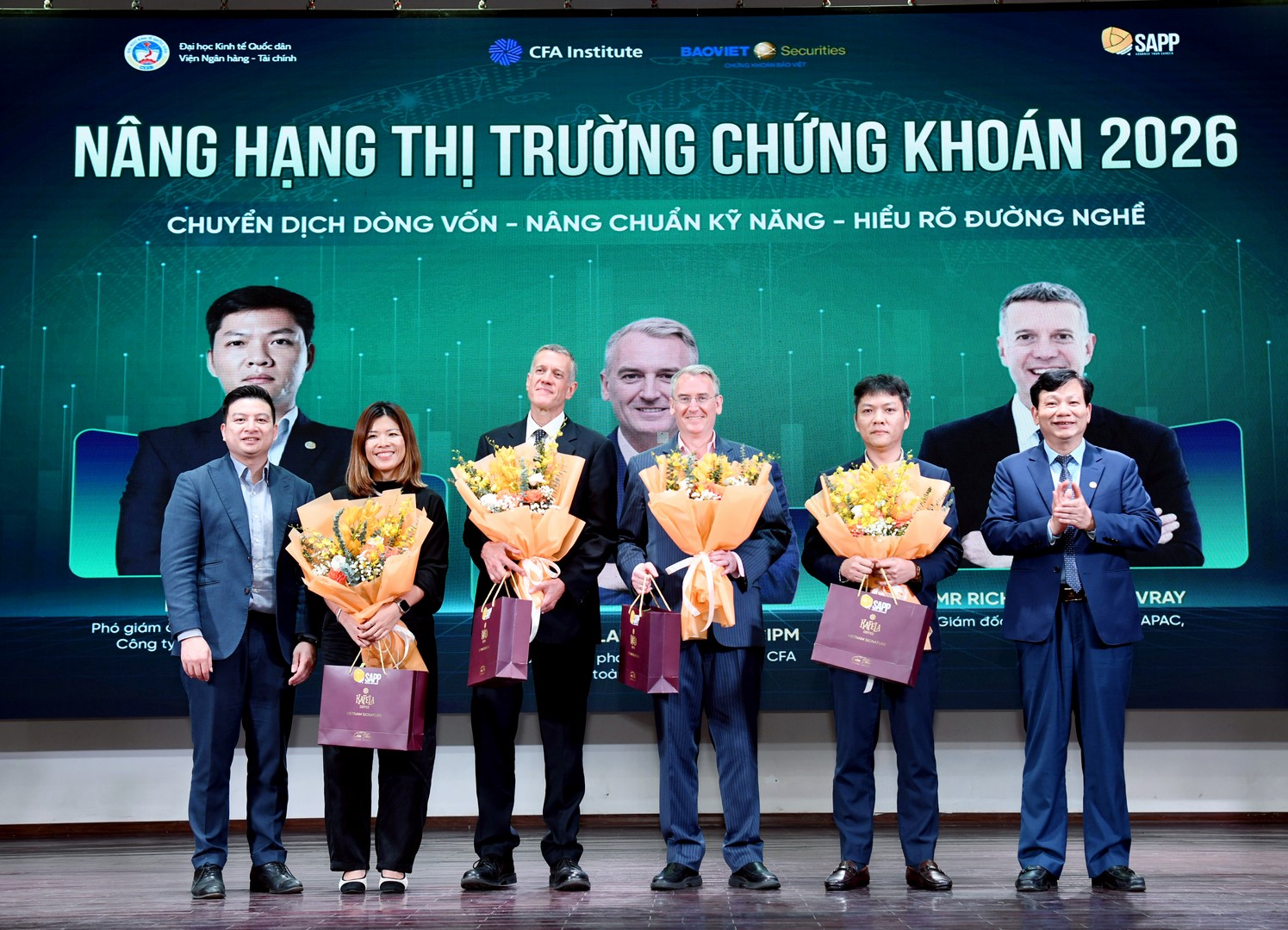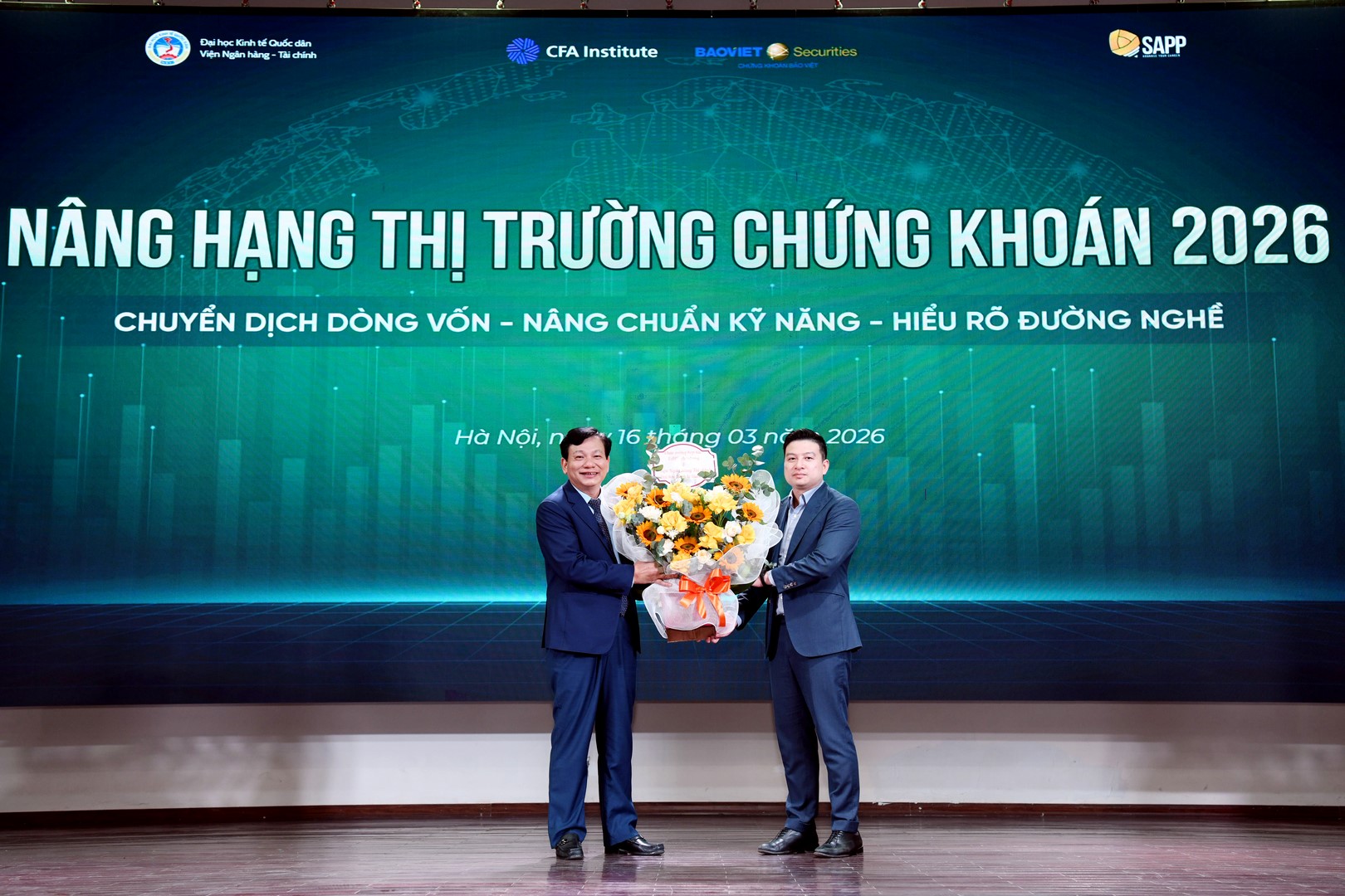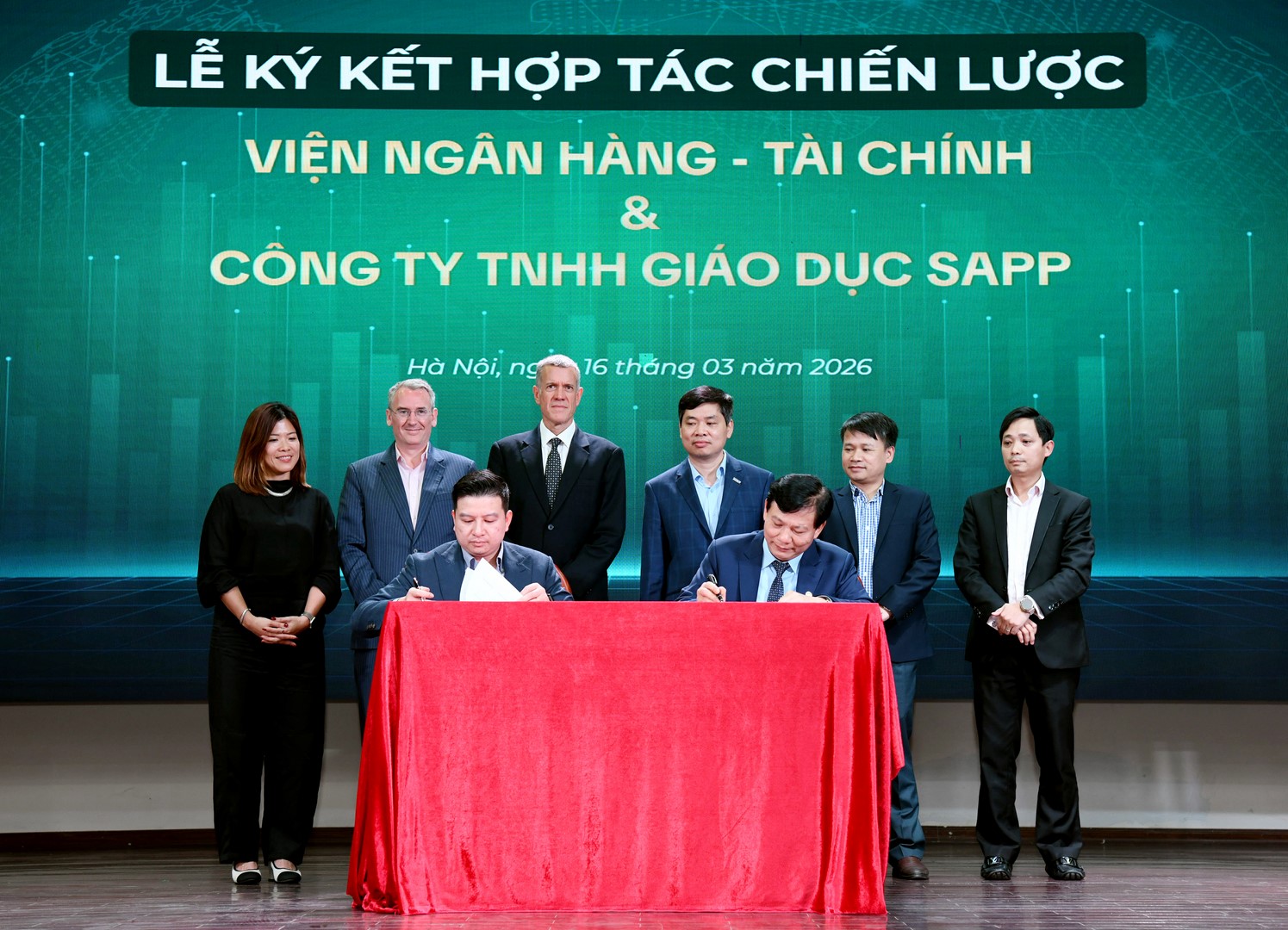 Chiều ngày 16/03/2026, tại Đại học Kinh tế Quốc dân, Viện Ngân hàng – Tài chính đã phối hợp với Công ty Cổ phần Giáo dục SAPP tổ chức Lễ ký kết Thỏa thuận hợp tác chiến lược trong khuôn khổ Tọa đàm chuyên đề “Nâng hạng Thị trường Chứng khoán 2026: Chuyển dịch dòng vốn – Nâng chuẩn kỹ năng – Hiểu rõ đường nghề”. Sự kiện đánh dấu bước đi quan trọng trong việc gắn kết giữa đào tạo học thuật và chuẩn mực nghề nghiệp quốc tế, đáp ứng yêu cầu hội nhập của thị trường tài chính Việt Nam.