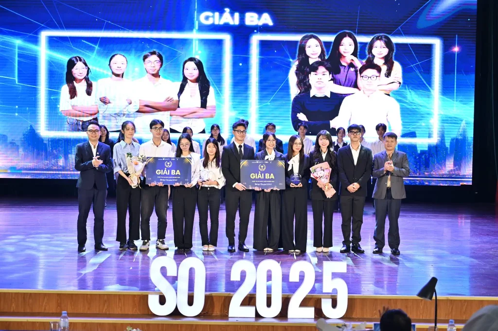 Và rồi, khoảnh khắc xướng tên các đội đoạt giải đã khiến cả hội trường bùng nổ trong tiếng vỗ tay và những cảm xúc vỡ òa. Vượt qua 9 đối thủ xuất sắc, đội Cốm Alpha – liên quân Đại học FPT Hà Nội và Đại học Kinh tế Quốc dân – đã giành Giải Nhất Startup Olympiad 2025 với dự án AIthenos, một mô hình EdTech ứng dụng AI để xây dựng lộ trình học tập cá nhân hóa. Dự án thuyết phục Ban giám khảo nhờ tính đột phá, khả năng đáp ứng nhu cầu thị trường và đội ngũ thực hiện có chuyên môn đa dạng.