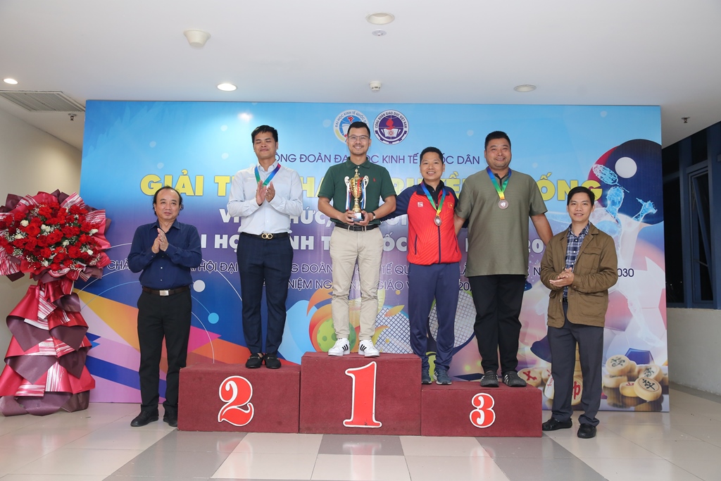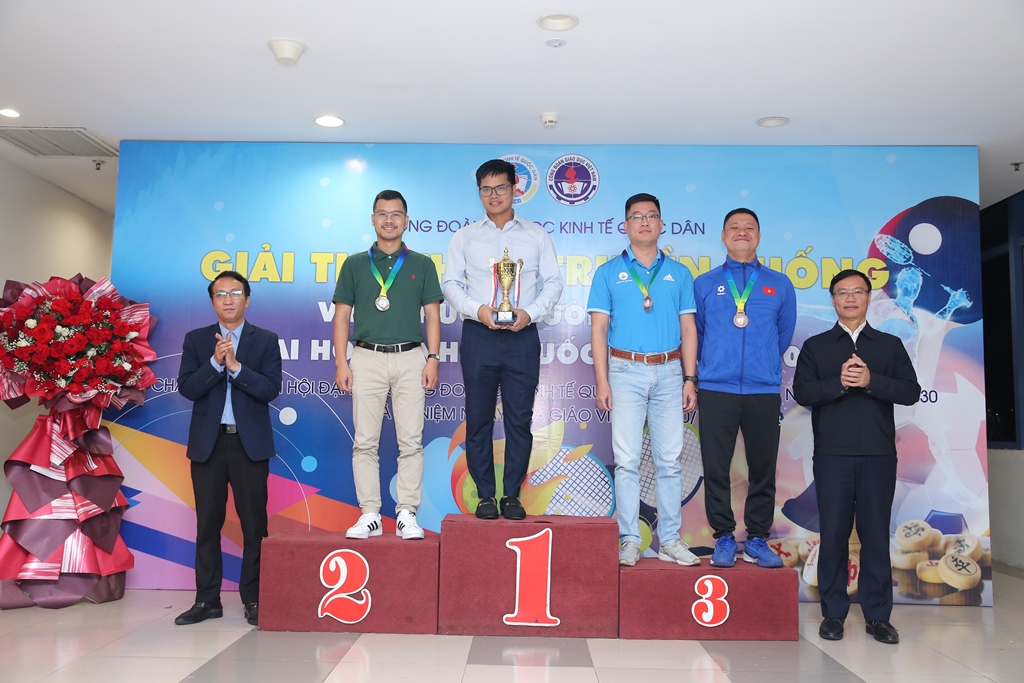 Lãnh đạo Đại học và đại diện lãnh đạo đơn vị trao giải cho các VĐV môn Cờ tướng