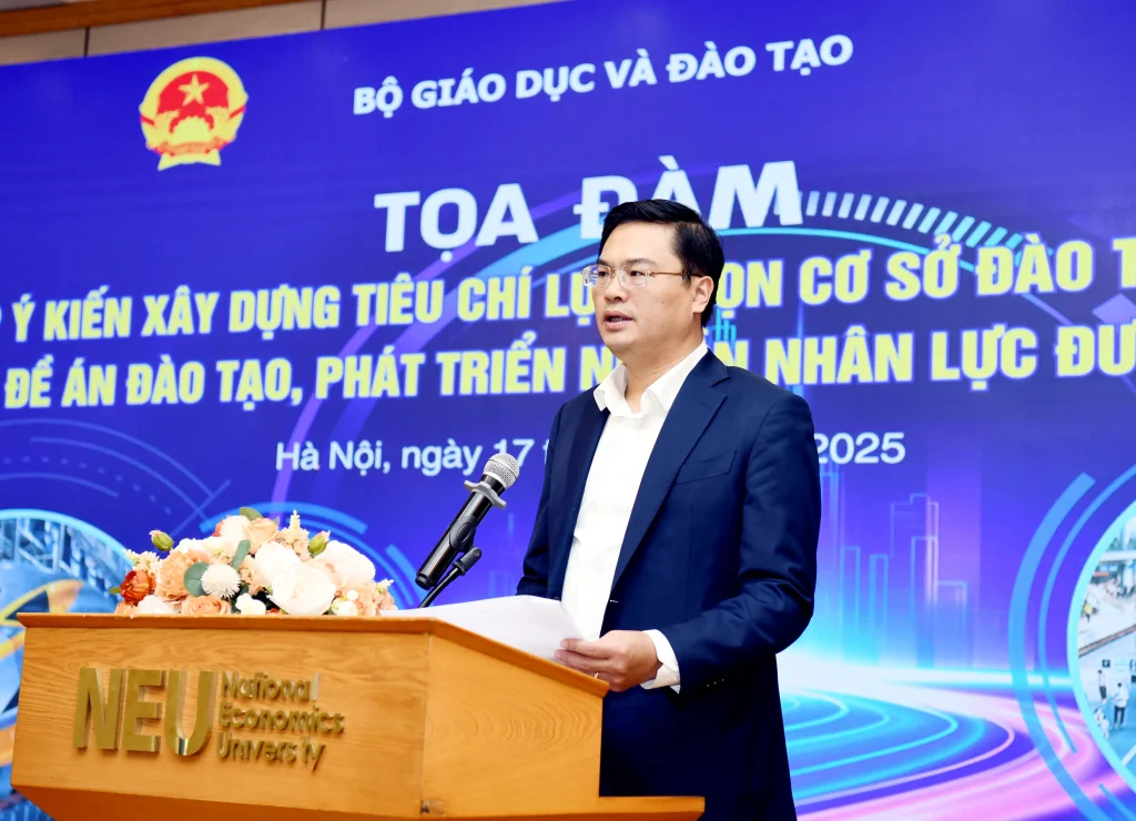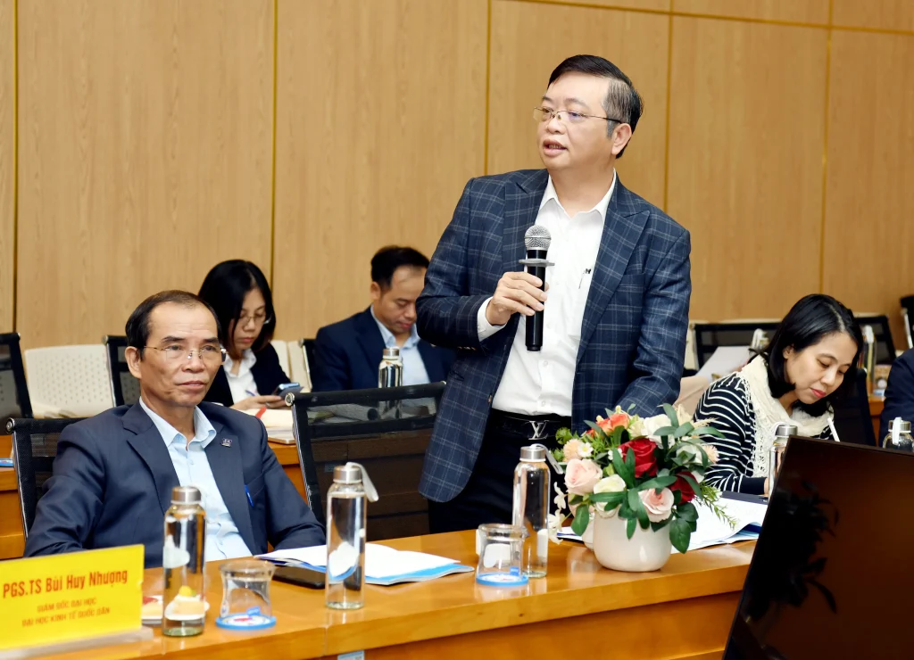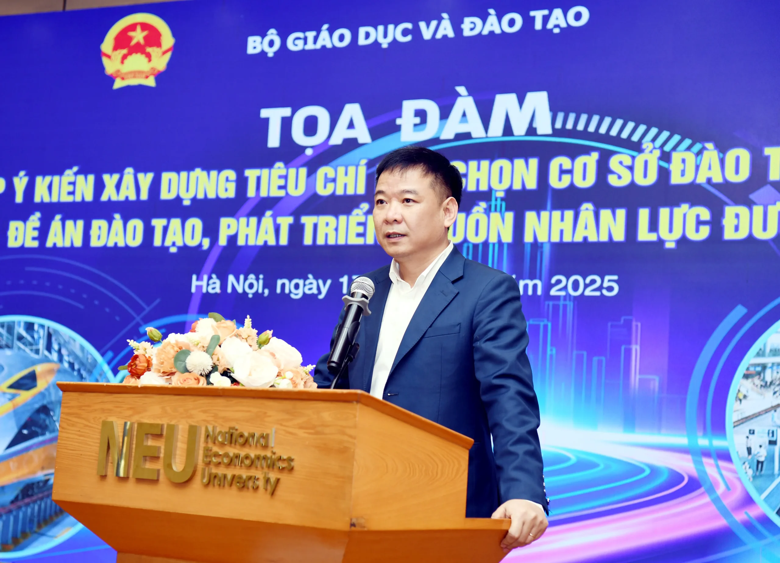 Phát biểu tại tọa đàm, PGS.TS Bùi Huy Nhượng – Giám đốc Đại học Kinh tế Quốc dân bày tỏ niềm vinh dự khi Nhà trường được Bộ Giáo dục và Đào tạo tin tưởng lựa chọn là đơn vị đăng cai, đồng thời nhấn mạnh ý nghĩa thiết thực của sự kiện đối với sứ mệnh đào tạo nguồn nhân lực chất lượng cao cho đất nước.