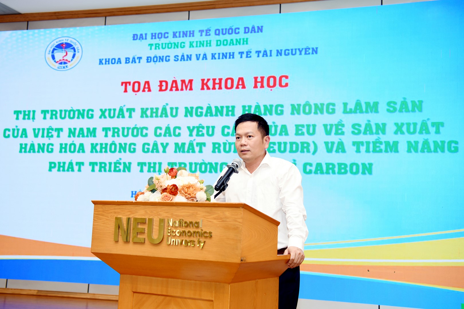 Nhằm thúc đẩy kết nối và đối thoại chính sách, chiều ngày 15/5/2025, Đại học Kinh tế Quốc dân phối hợp với Tổ chức Forest Trends đã tổ chức Tọa đàm khoa học với chủ đề: “Thị trường xuất khẩu ngành hàng nông lâm sản của Việt Nam trước các yêu cầu của EU về sản xuất hàng hóa không gây mất rừng (EUDR) và tiềm năng phát triển thị trường tín chỉ carbon”.