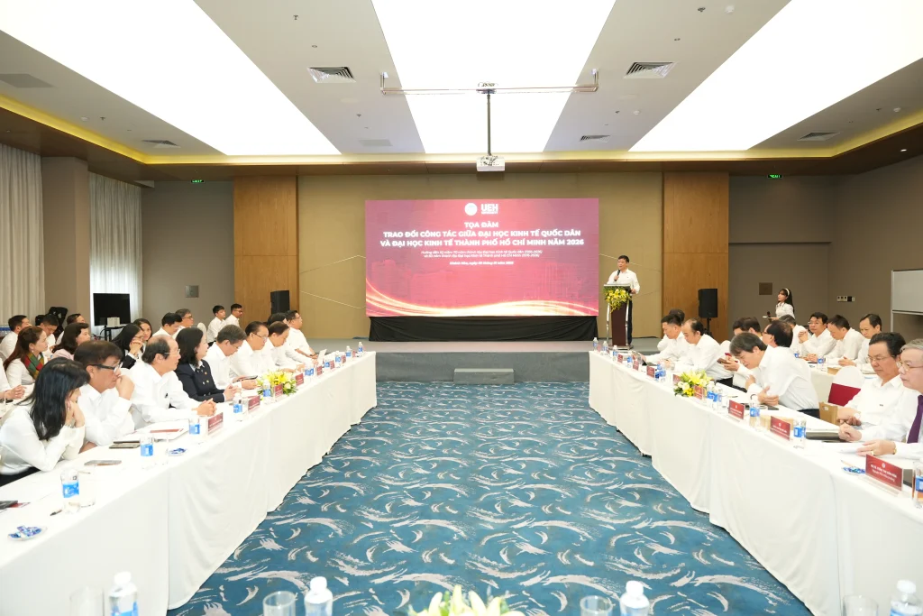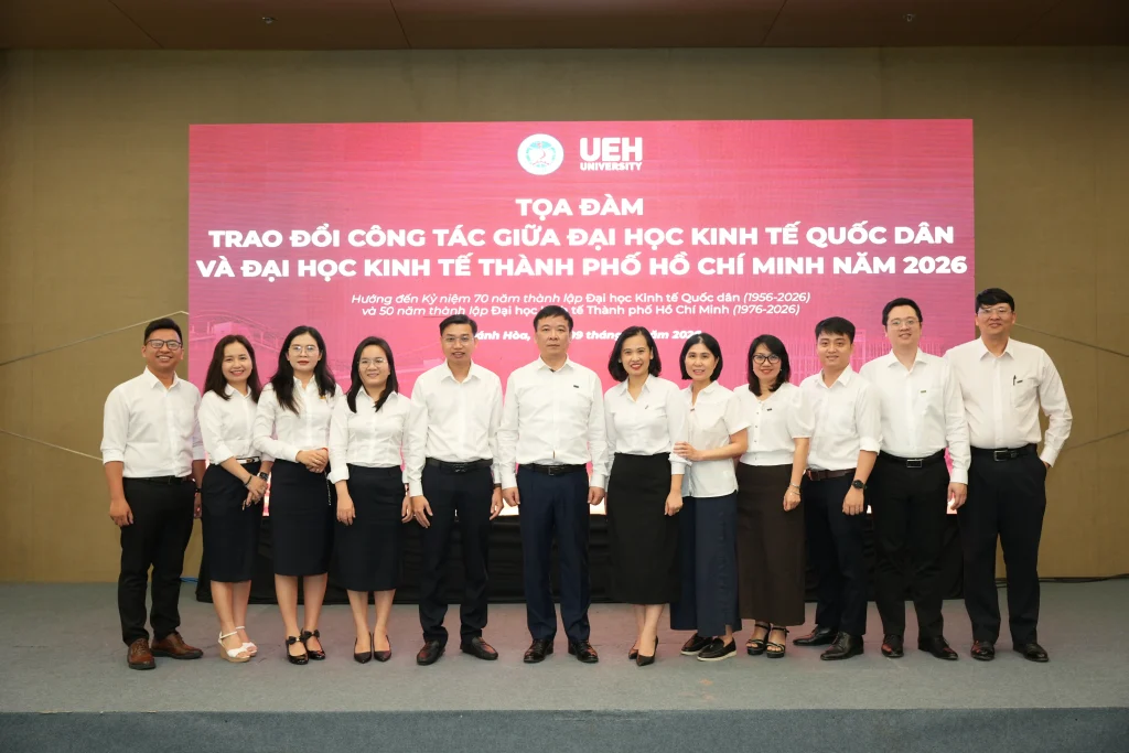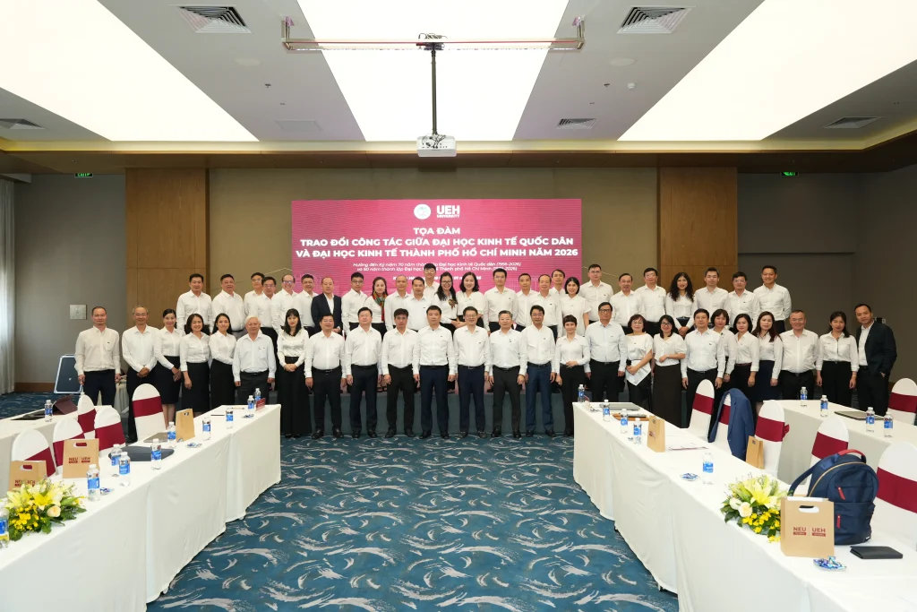 Sáng ngày 09/01/2026, tại Thành phố biển Nha Trang, Đại học Kinh tế Quốc dân và Đại học Kinh tế TP. Hồ Chí Minh đồng tổ chức Toạ đàm Trao đổi công tác giữa NEU-UEH năm 2026. Đây là hoạt động thường niên trong khuôn khổ quan hệ bền chặt hơn 40 năm của hai cơ sở đào tạo hàng đầu về kinh tế của đất nước.