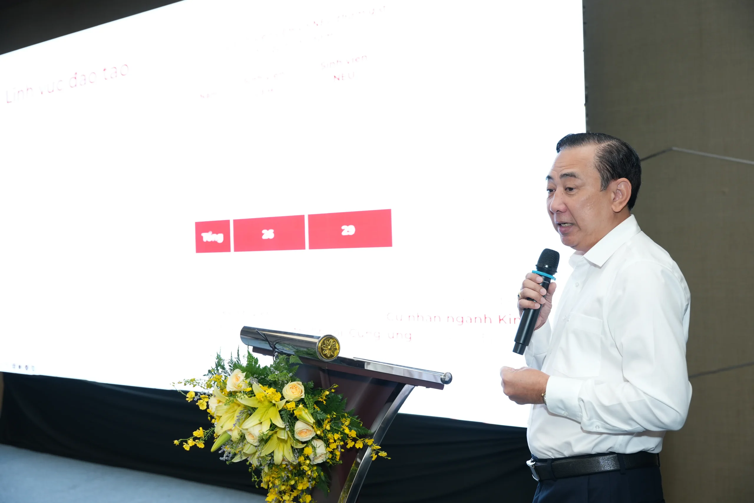 TS. Bùi Đức Dũng – Trưởng phòng Tổng hợp Đại học Kinh tế Quốc dân trình bày định hướng hoạt động giai đoạn 2025 – 2030 và chia sẻ về các hoạt động nhân dịp kỷ niệm 70 thành lập NEU