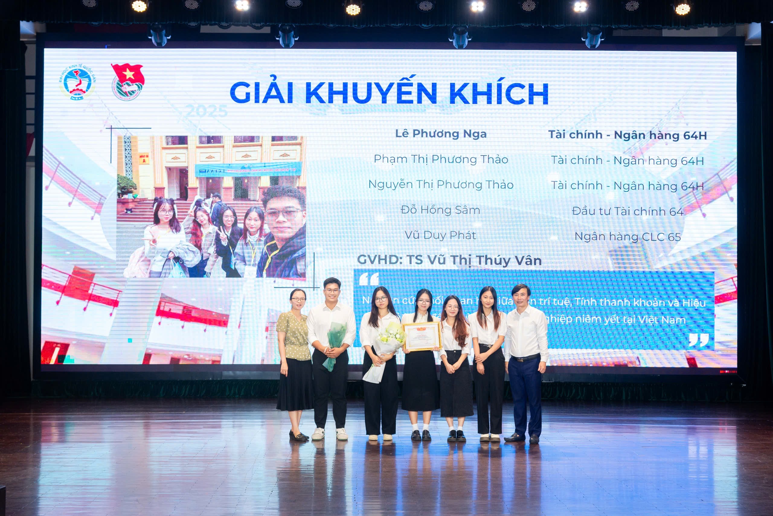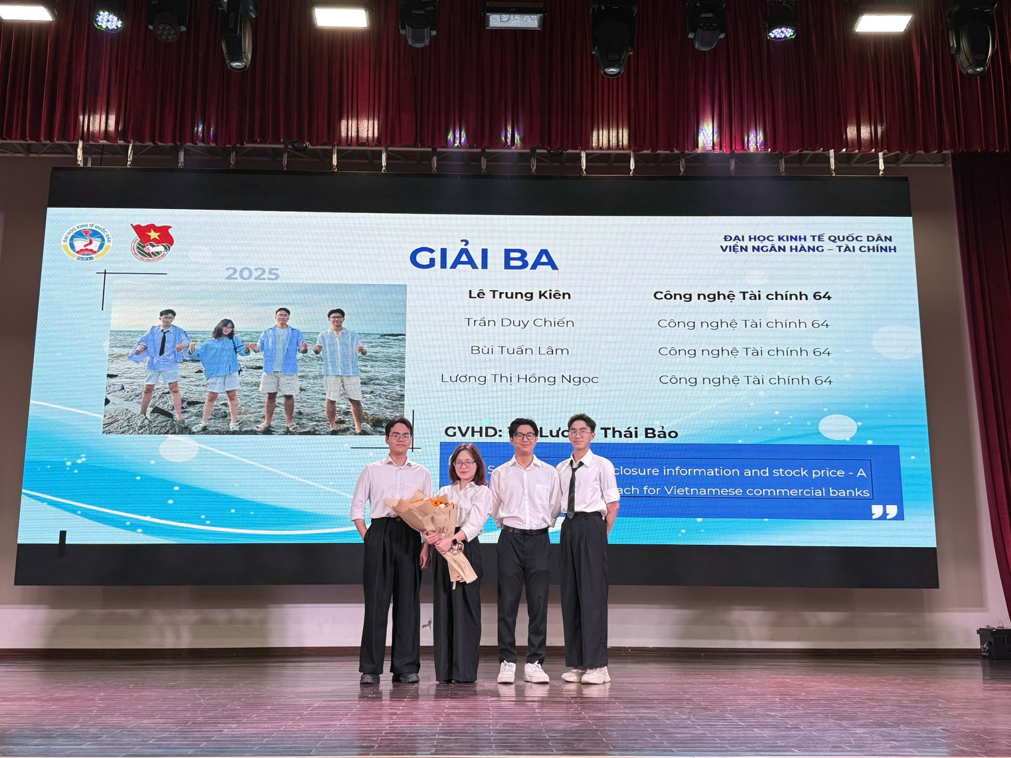 Nhằm ghi nhận những kết quả đó, Viện Ngân hàng – Tài chính đã tổ chức trao giải thưởng cho các đề tài NCKH sinh viên xuất sắc năm 2025, trong đó có các nhóm đạt giải cấp Bộ và các nhóm đạt giải cấp Trường. Hoạt động trao thưởng là sự ghi nhận kịp thời đối với tinh thần nỗ lực, sáng tạo và trách nhiệm của sinh viên trong suốt quá trình thực hiện nghiên cứu khoa học, đồng thời tạo động lực để phong trào NCKH tiếp tục phát triển trong toàn Viện.